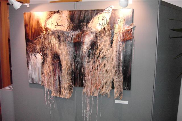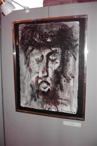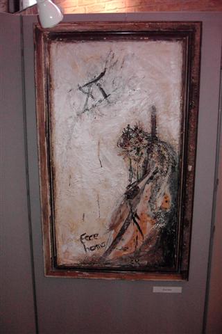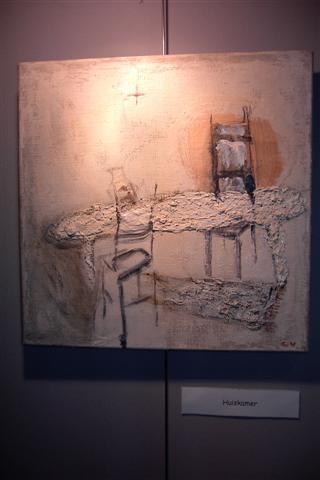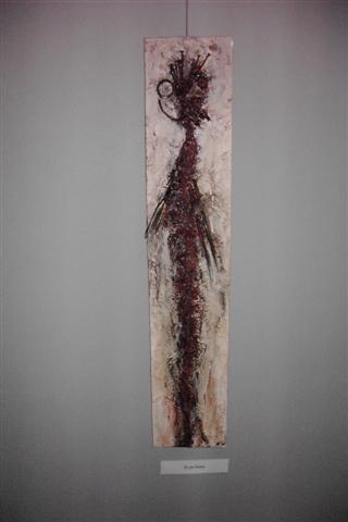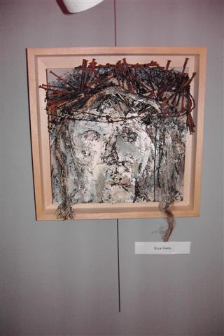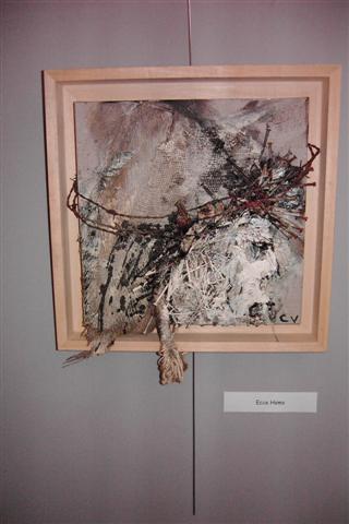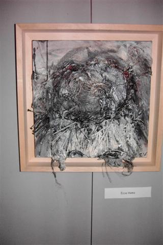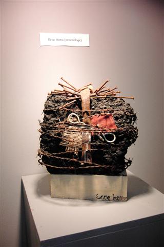 Carl is landschapsarchitect van opleiding. Dat maakte van hem iemand die oog heeft voor de natuur. Zo had hij ook schilder van idyllische landschappen kunnen zijn, maar hij is iemand die zijn inspiratie zoekt en vindt bij oude, afgedankte materialen die hij weet te assembleren en te reconstrueren tot een nieuwe werkelijkheid. Al die materialen van verschillende aard en vorm weet hij in te passen, te plooien en te lijmen letterlijk en figuurlijk naar zijn visie en gevoel. Een levenloze constructie wordt een levende, organische werkelijkheid. Want het leven blijft het belangrijkste. Ja, de méns staat centraal! Ziet de mens. Ecce homo. Een paar keer hier te zien in verschillende fases en poses. Het gekreukte en geroeste ruwe materiaal belichaamt de geknakte mens. En voor een religieus mens is dat het beeld van Jezus die zijn kruisweg ging.