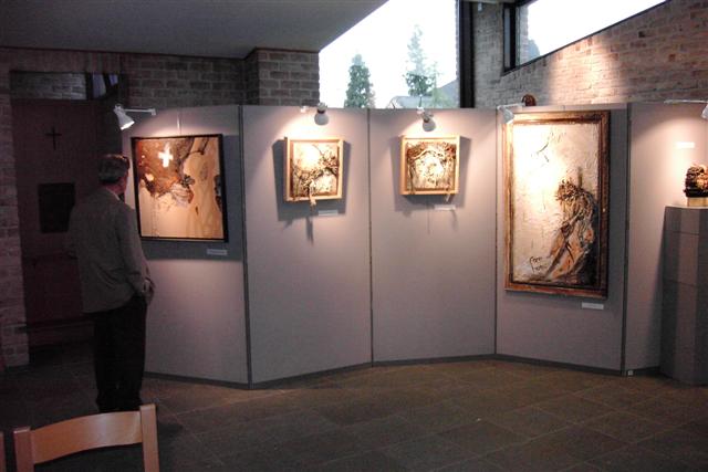Aanvankelijk moesten wij eraan wennen. Deden wij er goed aan dit werk in onze kerk op te hangen? Er zijn discussies over gevoerd. Niet over de noodzaak van een kruisweg, niet over de inhoud, maar wel over de vorm. Maar het werd ons duidelijk dat niet alleen de zachte kleuren zo goed harmonieerden met ons gebouw. Ook achterliggende visie op de lijdensweg van de Heer leek ons boeiend genoeg om bij elk tafereel even stil te staan. Die visie is hoe je het ook bekijkt religieus - uiteraard door het onderwerp, maar ook door het getuigenis van een sterke verbondenheid met de dingen rondom ons, die dezelfde lijdensweg doormaken en eindigen in stof en schroot, maar toch uiteindelijk tot een vreemde schoonheid worden gevoerd. Daarom ontbrak er nog een statie: de Verrijzenis. Carl noemde het een verlossing. het begrip verrijzenis kun je immers opheel veel manieren invullen. toch is het op en top christelijk De spiegeltjes die erin zitten verwerkt, zeggen iets van: “Wij zien, elkaar weer”. Om het met Paulus te zeggen: ”Nu kijken wij nog in een spiegel, we zien raadselachtige dingen, maar straks zien we van aangezicht tot aangezicht.”