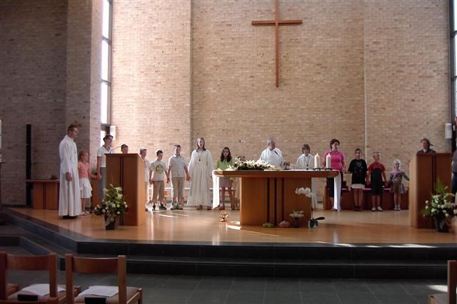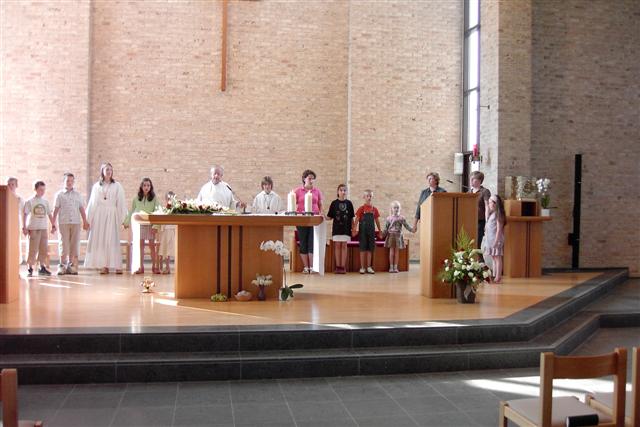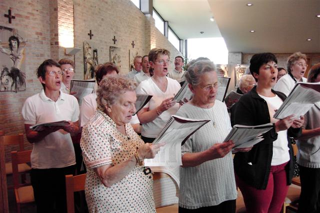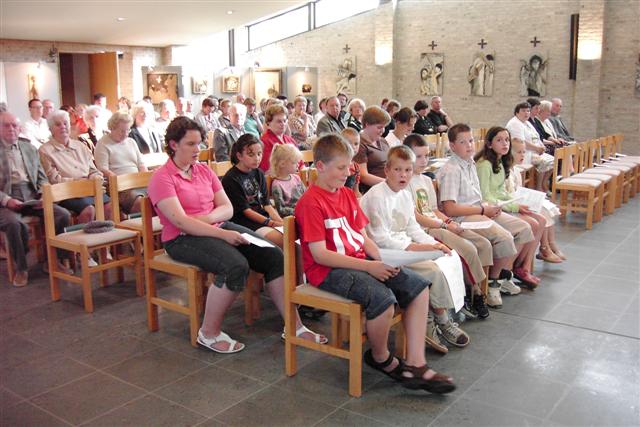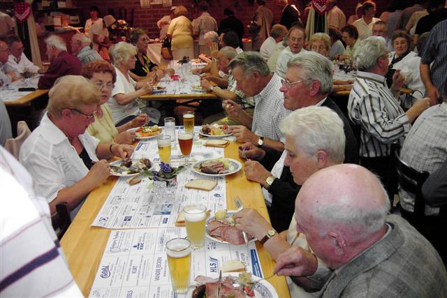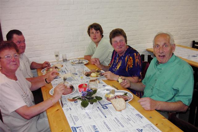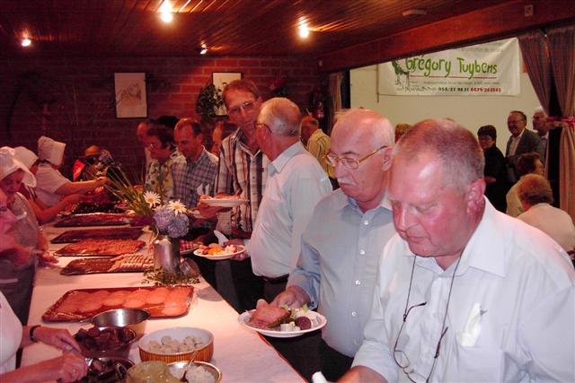 Starten met God te danken in een deugddoende eucharistieviering en een daarna smullen op het breugelmaal. (9 juli 2005)