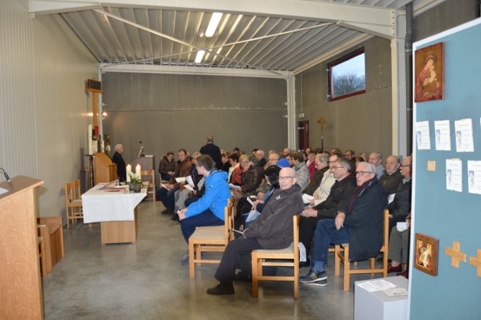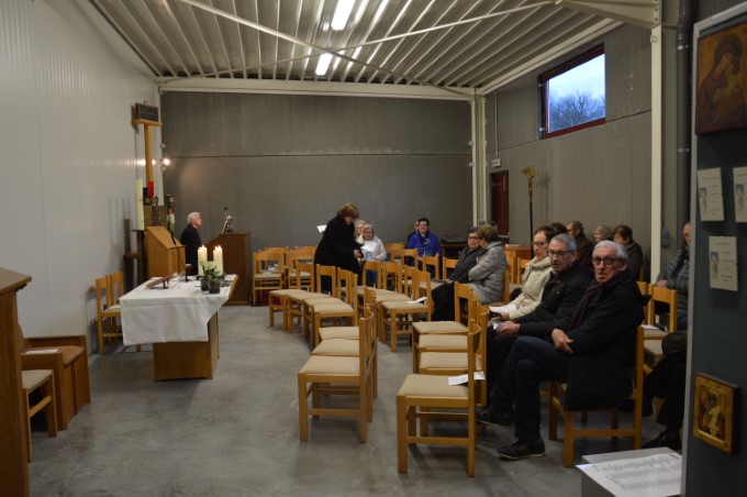 Zondag 12 januari was het druk in De Spil. Nee, niet in de grote feestruimte, maar in de nieuw- ingerichte SPILKAPEL Deze is ondergebracht in de berging van onze parochiezaal. Een heel geslaagd project, daarover is iedereen die bij de inzegening aanwezig was, het roerend eens. Onze trouwe kerkgangers ontbraken niet op het appel. Inderdaad, de ruimte zat eivol. Dit gaf aan het liturgische invulling een zeer dynamische impuls.