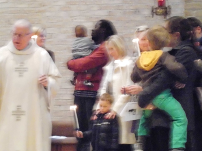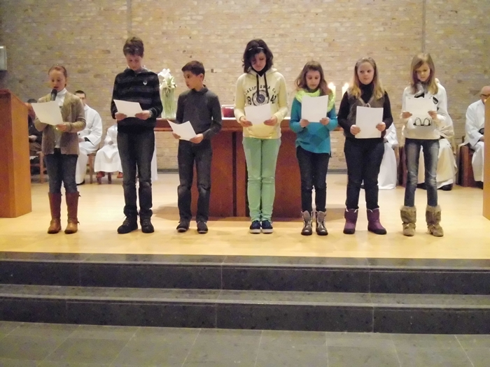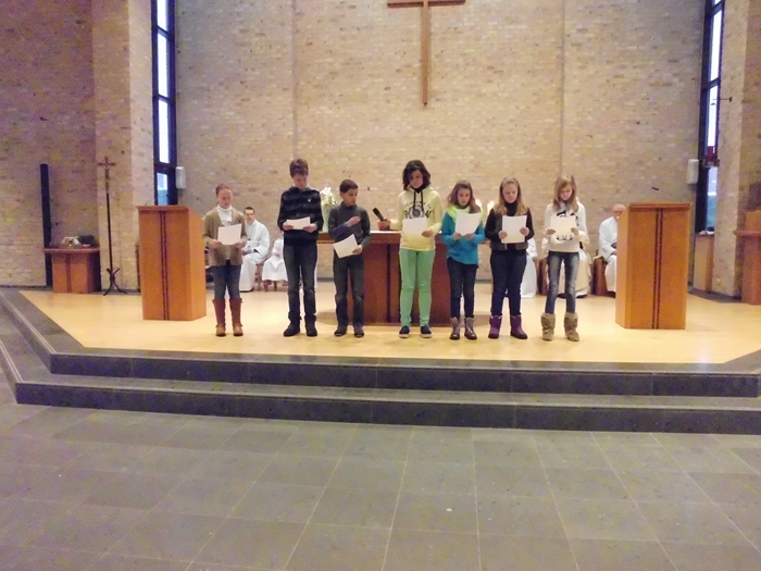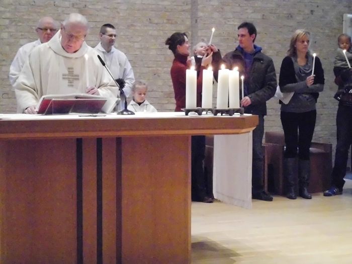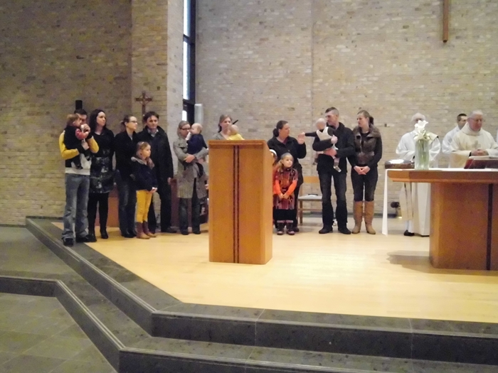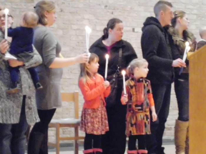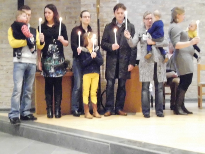 Lichtmis. STEMMIGE LICHTMISVIERING. De zondagviering van 27 januari stond - een weekje voor het lichtmisfeest - reeds in het teken van de Opdracht in de Tempel. Veel jonge ouders zijn graag ingegaan op de uitnodiging om, in navolging van Maria en Jozef, hun pasgedoopt kindje aan Gods liefdevolle hoede toe te vertrouwen. Ook de vormelingen waren van de partij in deze viering. Pastoor Kan. André De Wolf, ging voor, bijgestaan door diakens-doopheren Pol Tordeur en Leo De Croo. . Hartverwarmend was de heel actieve inbreng van de ouders tijdens de verschillende tekstgedeelten. Femma-Jong (KAV) stond in voor de praktische organisatie. Na de viering viel er tijdens de receptie nog wat na te praten en te versnaperen. Terug St.-Pieter startpagina |