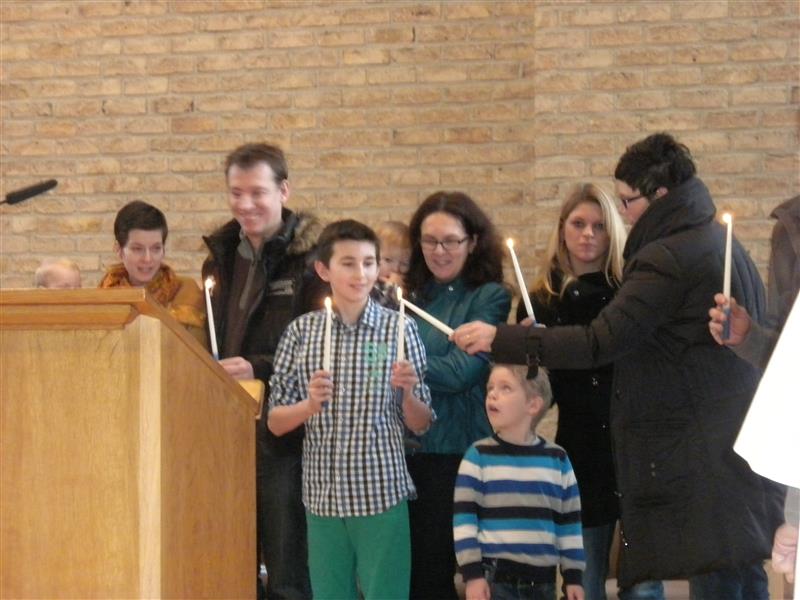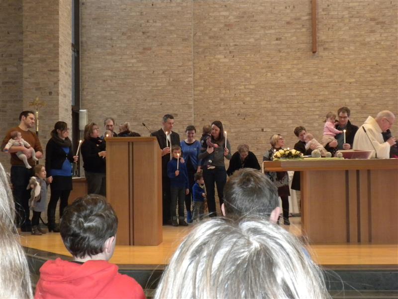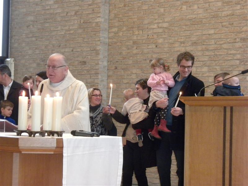 Lichtmis. STEMMIGE LICHTMISVIERING. De zondagviering van 26 januari stond - een weekje voor het lichtmisfeest - reeds in het teken van de Opdracht in de Tempel. Veel jonge ouders zijn graag ingegaan op de uitnodiging om, in navolging van Maria en Jozef, hun pasgedoopt kindje aan Gods liefdevolle hoede toe te vertrouwen. Ook de vormelingen waren van de partij in deze viering. Pastoor Kan. André De Wolf, ging voor. Hartverwarmend was de heel actieve inbreng van de ouders tijdens de verschillende tekstgedeelten. Femma-Jong (KAV) stond in voor de praktische organisatie. Na de viering viel er tijdens de receptie nog wat na te praten en te versnaperen. Terug St.-Pieter startpagina |