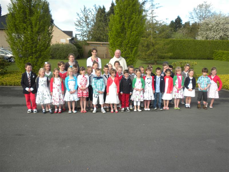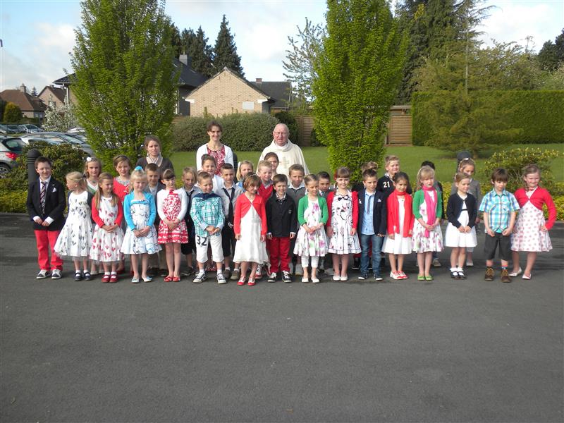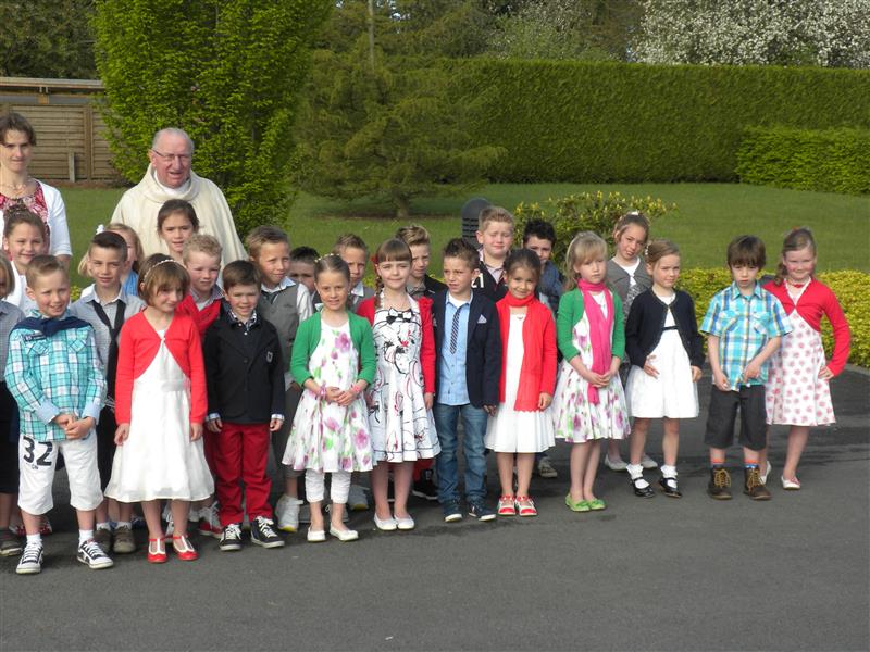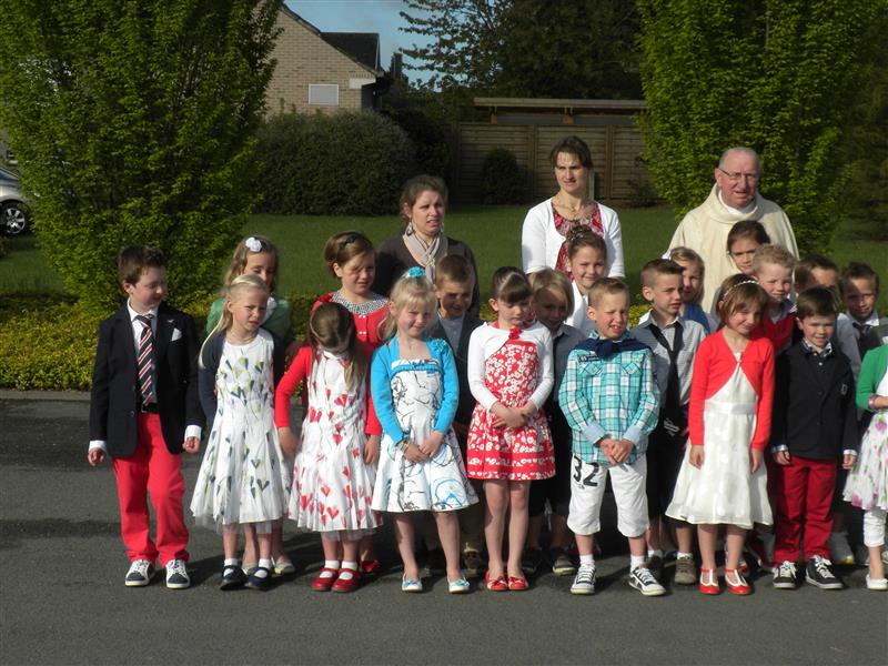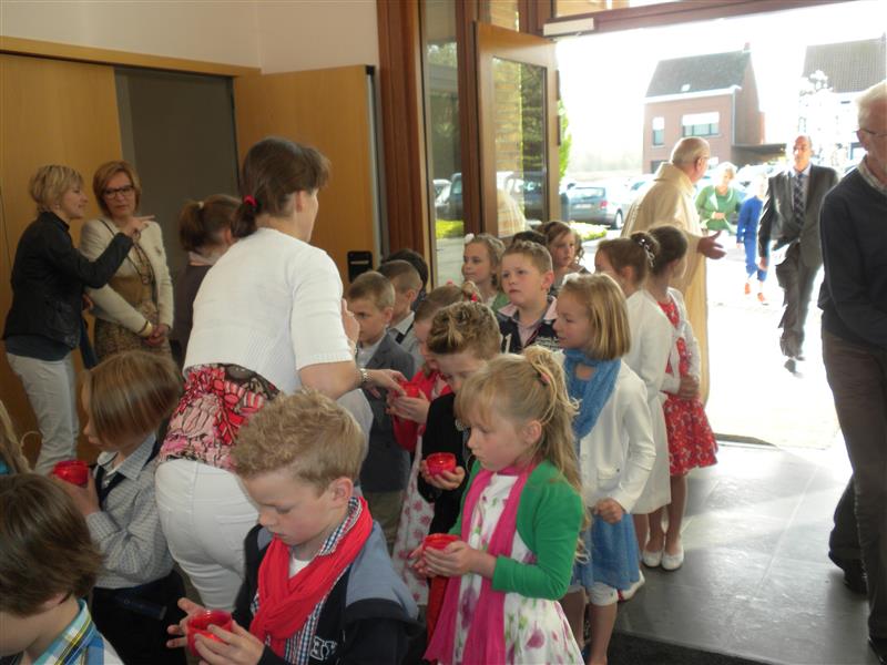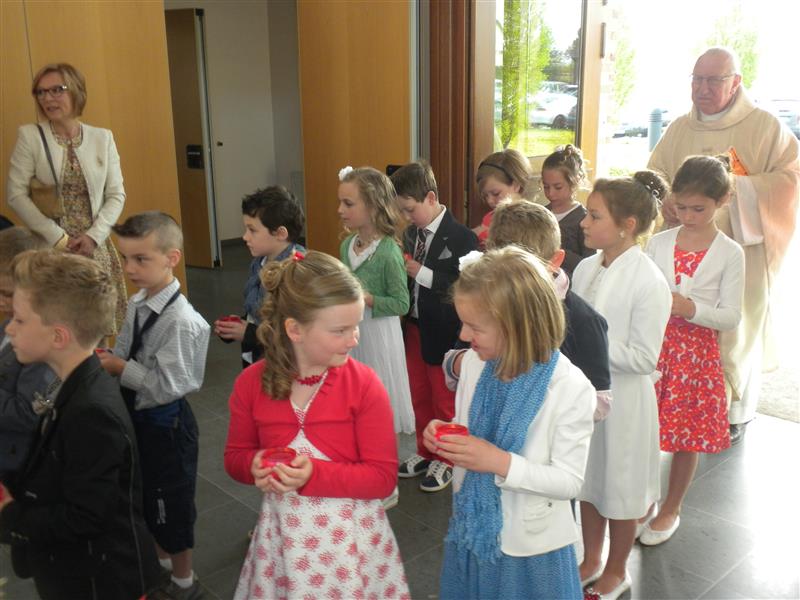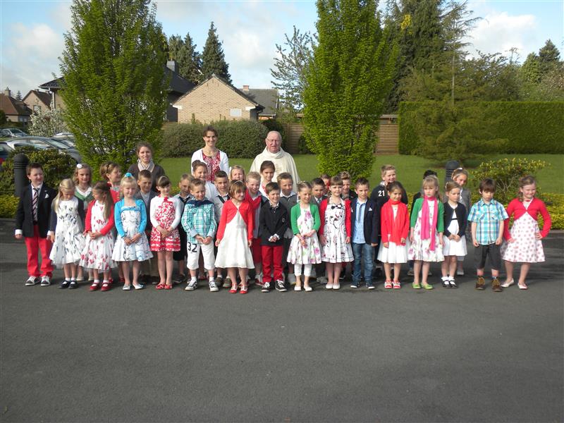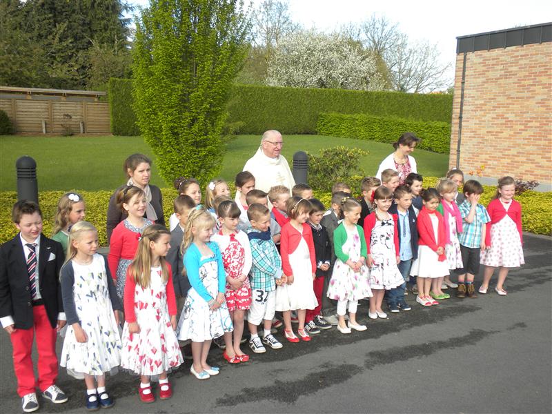Eerste Communie 2013. ‘HARTJE LIEF’ “Mijn hartje doet wat raar vandaag… Boem, boem, boem! Rikketikketik!”,zongen onze eerste-communicantjes bij het begin van de mooie, druk bijgewoonde viering op hemelvaartsdag. En dat van pastoor André De Wolf niet minder: “Mijn hart klopt snel, omdat ik blij ben dat jullie hier zijn vandaag.” Het was goed te horen en te zien. Er was de maandag en dinsdag ervóór duchtig genoeg gerepeteerd. De kinderen vierden hun eerste ‘ontmoeting met Jezus’ met aanstekelijk enthousiasme in het bijzijn van familie, vrienden en de hele parochiegemeenschap. De verdiende applausjes waren dan ook niet van de lucht. Dat klonk evenzeer voor de begeleidsters Jessica en Mieke, en allen die aan de viering zoveel kleur in beeld en klank hebben gegeven. Met heel veel dank vanwege zovelen! Deze kinderen ontvangen Jezus voor het eerst in hun hart: Evelyne Avedisian – Laurien Bijst – Giselle Brockart - Liam Carlier - Adriano Conte - Isaac Cornelis – Lonneke Debeyter - Ellen Depuydt - Lize De Smaele - Arthur Desseyn - Luca Dewolf - Michaël Freson – Louka Gerard – Femke Gevers - Néo Gheenens – Toan Gheenens – Mattis Josson - Gauthier Laurier - Nathan Quintin - Jasper Rogge - Mathias Rogge – Arwen Schier - Amélie Souris - Lara T’kindt - Kjell Uytterhaegen - Lotte Van Asbroeck - Arno Vandenabeele - Pauline Vandepoorte - Chana Vander Putten - Liselot Vander Putten - PhibyVanderveken - Ophélie Wauters - Charlotte Wittamer. Terug St.-Pieter startpagina |