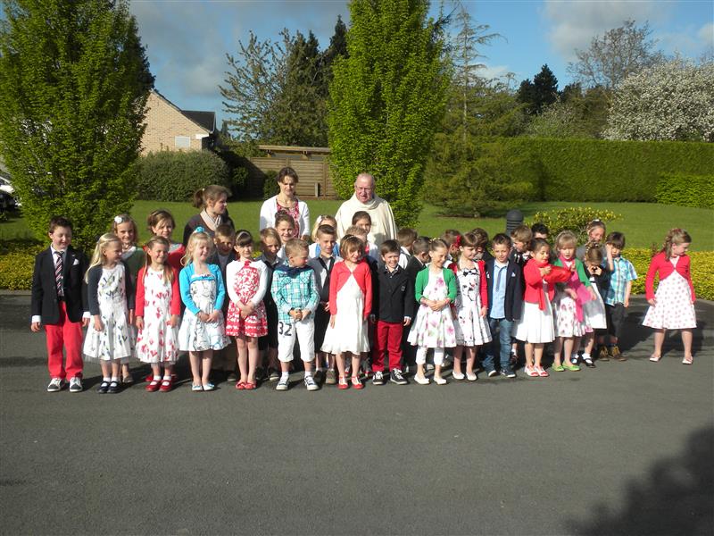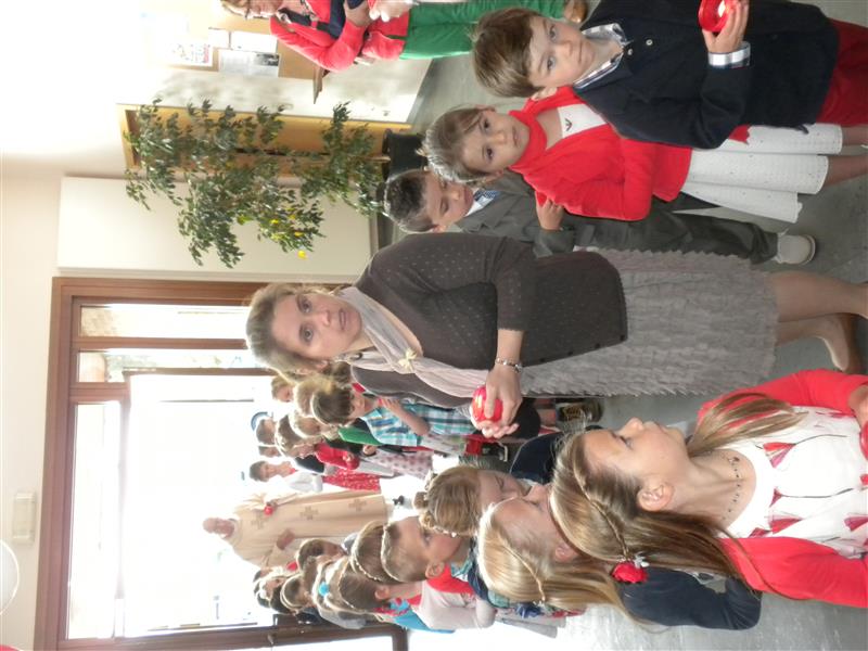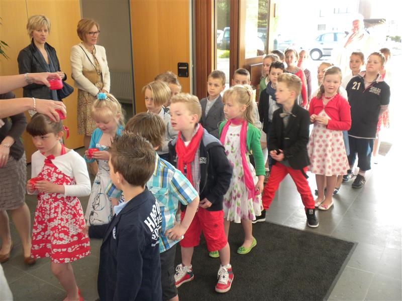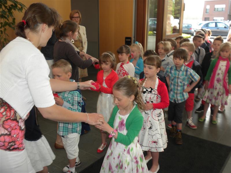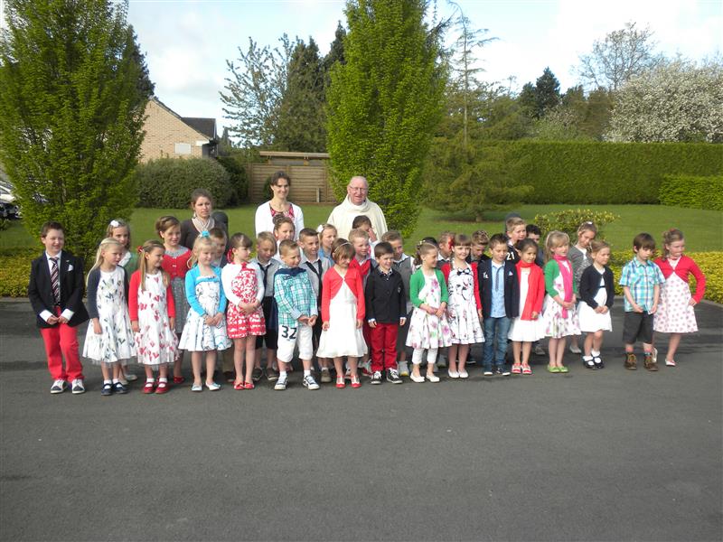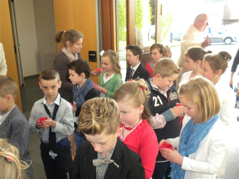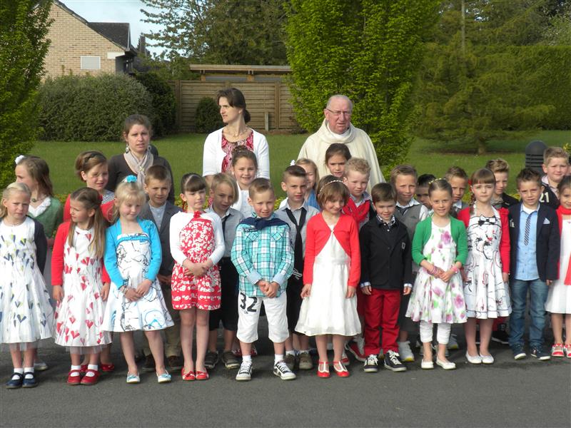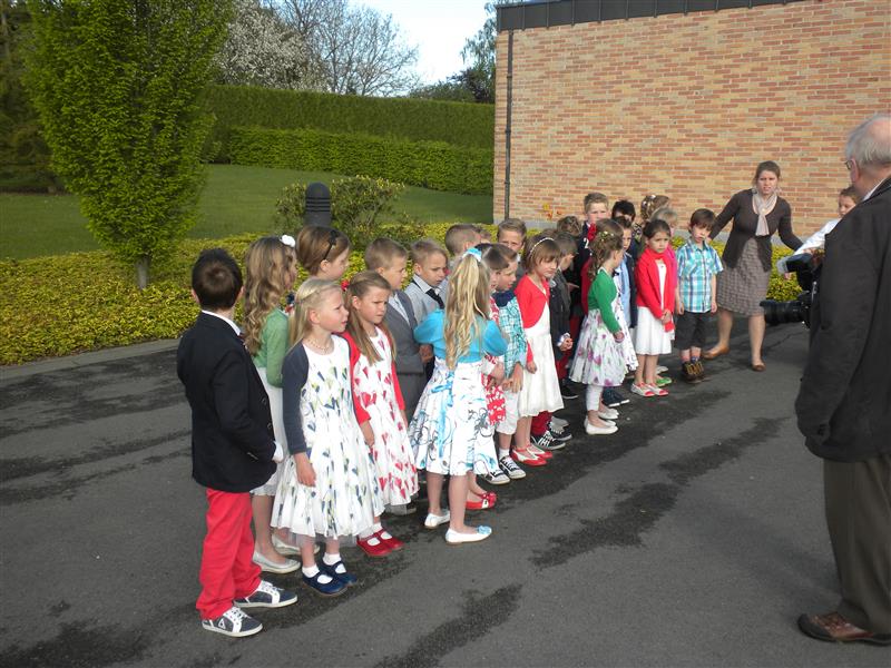 Eerste Communie 2013. ‘HARTJE LIEF’ “Mijn hartje doet wat raar vandaag… Boem, boem, boem! Rikketikketik!”,zongen onze eerste-communicantjes bij het begin van de mooie, druk bijgewoonde viering op hemelvaartsdag. En dat van pastoor André De Wolf niet minder: “Mijn hart klopt snel, omdat ik blij ben dat jullie hier zijn vandaag.” Het was goed te horen en te zien. Er was de maandag en dinsdag ervóór duchtig genoeg gerepeteerd. De kinderen vierden hun eerste ‘ontmoeting met Jezus’ met aanstekelijk enthousiasme in het bijzijn van familie, vrienden en de hele parochiegemeenschap. De verdiende applausjes waren dan ook niet van de lucht. Dat klonk evenzeer voor de begeleidsters Jessica en Mieke, en allen die aan de viering zoveel kleur in beeld en klank hebben gegeven. Met heel veel dank vanwege zovelen! Deze kinderen ontvangen Jezus voor het eerst in hun hart: Evelyne Avedisian – Laurien Bijst – Giselle Brockart - Liam Carlier - Adriano Conte - Isaac Cornelis – Lonneke Debeyter - Ellen Depuydt - Lize De Smaele - Arthur Desseyn - Luca Dewolf - Michaël Freson – Louka Gerard – Femke Gevers - Néo Gheenens – Toan Gheenens – Mattis Josson - Gauthier Laurier - Nathan Quintin - Jasper Rogge - Mathias Rogge – Arwen Schier - Amélie Souris - Lara T’kindt - Kjell Uytterhaegen - Lotte Van Asbroeck - Arno Vandenabeele - Pauline Vandepoorte - Chana Vander Putten - Liselot Vander Putten - PhibyVanderveken - Ophélie Wauters - Charlotte Wittamer. Terug St.-Pieter startpagina |