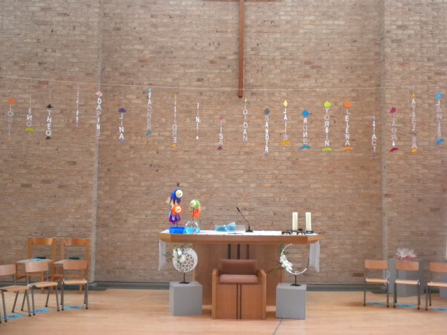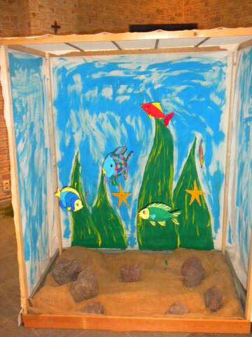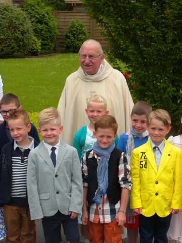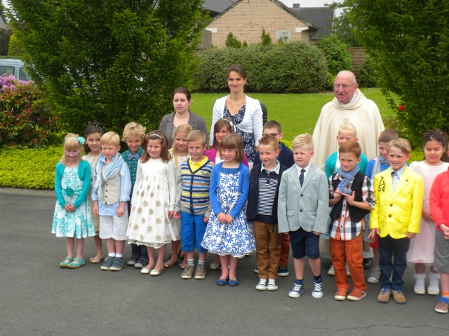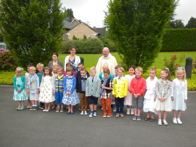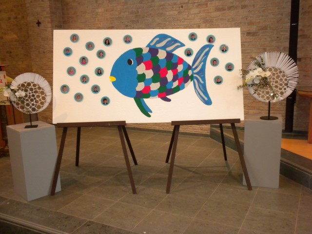 Eerste Communie 2014. ‘DE MOOISTE VIS VAN DE ZEE Deze kinderen ontvangen Jezus voor het eerst in hun hart: Eline Aelbrecht - Laura Anssens - Sander Anssens - Inês Bourgeois - Arno Cuvelier –Daphne Debeyter -Théo De Bock - Laure De Smet - Jelena Devleesschauwer – Lina De Zitter – Lisa D’hondt - Sander Dierickx - Jordan Dujardin – Jolisa Dreelinck - Loran Geenens - Lander Henneghien - Stacy Moreau - Yorben Stockman - Axandre Thomas -Angelina Vanherpe - Rune Vanwingene. De Sint-Pietersparochie wenst aan deze meisjes en jongens en hun ouders een schitterende dag toe. Moge dit “scharniermoment” de band verstevigen met onze parochiegemeenschap, zodat wij op elkaars wederzijds engagement kunnen blijven rekenen. Dat alles in de school vissen!. |