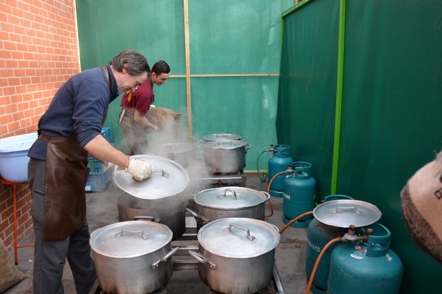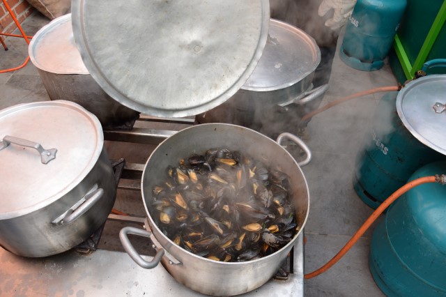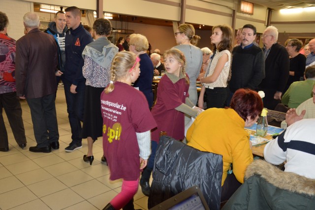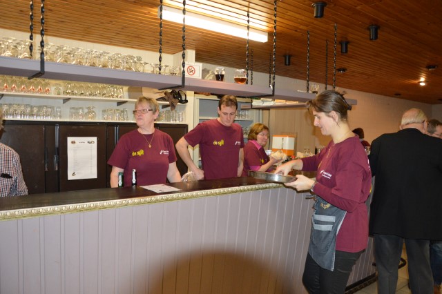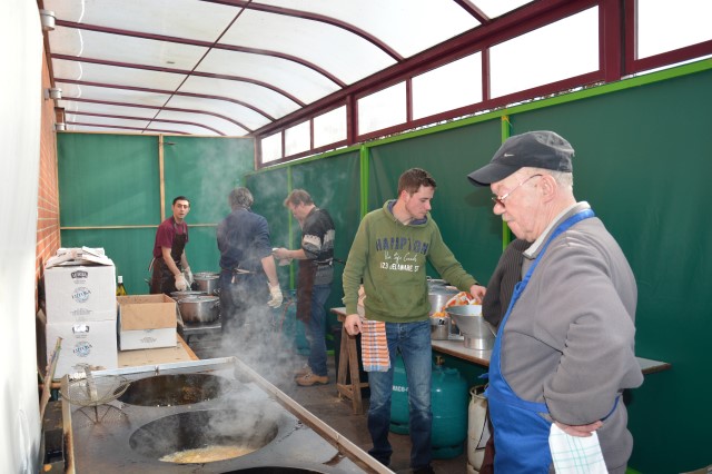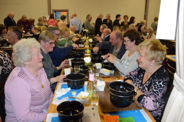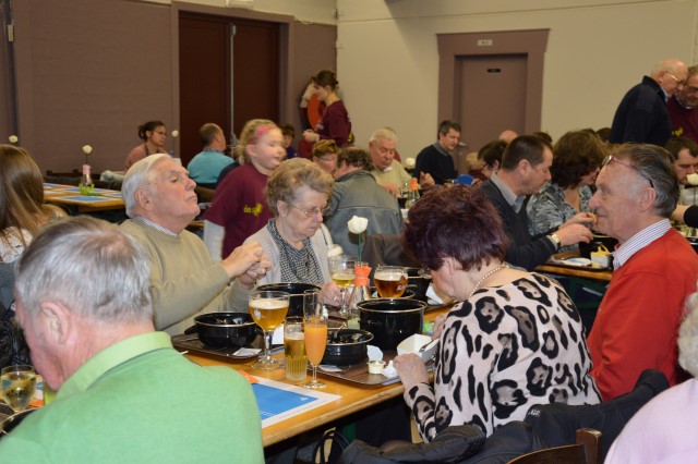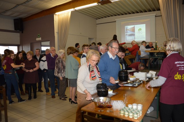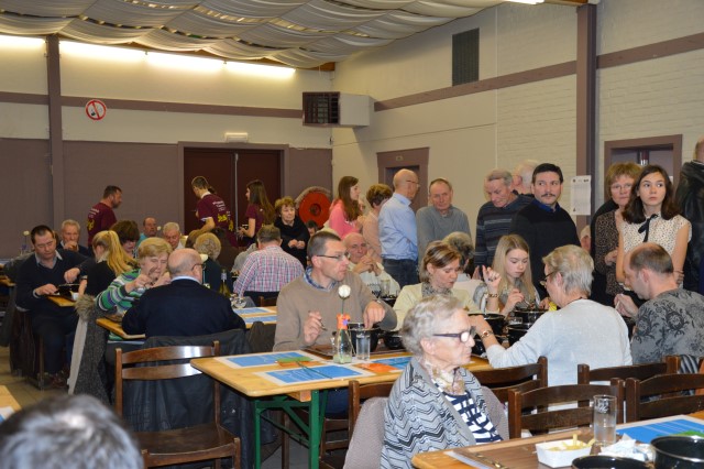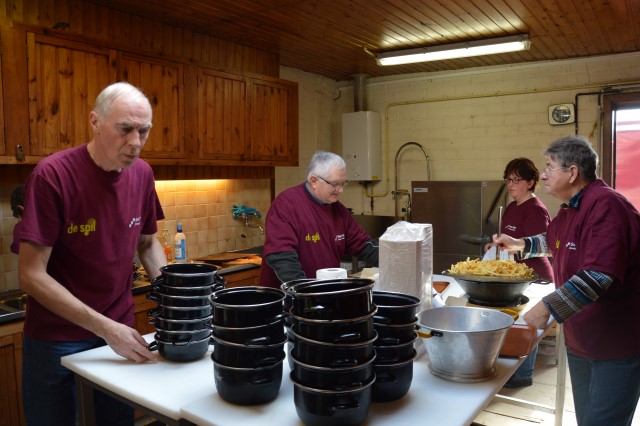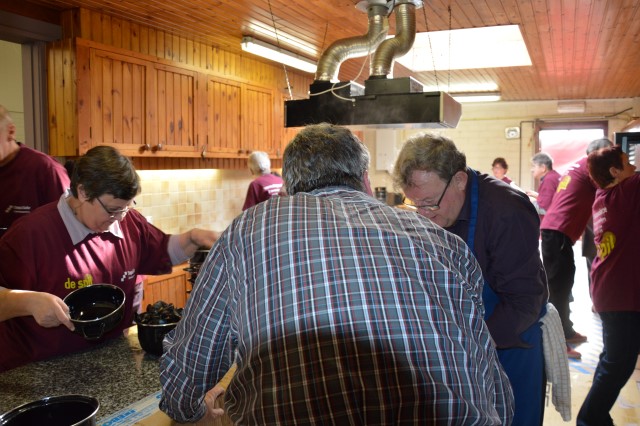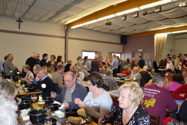 MOSSELFESTIJN ! Zondag 7 februari. De Spil was weer (bijna) te klein om plaats te bieden aan de vele mosselliefhebbers die ook deze 29ste keer van her en der op onze uitnodiging waren ingegaan. Oprechte dank aan alle werkers en de sympathisanten, die daarmee onze parochiewerking en haar verenigingen willen steunen. ALTIJD LEKKERE …OP ST.-PIETER. Velen blijven het de moeite vinden om à volonté van onze ‘huisbereide’ mosselen en vol-au-vent te genieten. Ook deze keer liep de Spil overvol met eetlustigen! Onze oprechte dank gaat uit naar onze talrijke medewerkers (o.w. een groot deel jonge mensen) en de vele sympathisanten, die daarmee onze VZW-St.-Pietersparochie en haar verenigingen (Liturgische Groep, Kaartersclub, KVLV, Ziekenzorg) willen steunen. De VZW kan de steun ook goed gebruiken. Immers, zopas is de nieuwe berging klaar. Die zal ons nog meer comfort verschaffen. Meteen komt de oude berging op de speelplaats helemaal vrij voor onze school! Wij vermelden ook graag dat een aanzienlijk deel van de mosselopbrengst van ons mosselfestijn opzij wordt gelegd voor Broederlijk Delen. VOL-AU-VENT VAN ZIEKENZORG. Op de vrijdag rept ieder kernlid van Ziekenzorg zich naar de keuken van de Spil om een respectabel aantal kippenborsten tot vol-au-vent klaar te roeren. In rep en roer stond de keuken dus alweer. Ten bewijze van de kwaliteit van hun roerselen, vermelden we graag dat tijdens het mosselfestijn een 80-tal gasten deze lekkernij boven de vanzelfsprekend even lekkere mosselen prefereerden. Terug St.-Pieter startpagina |
