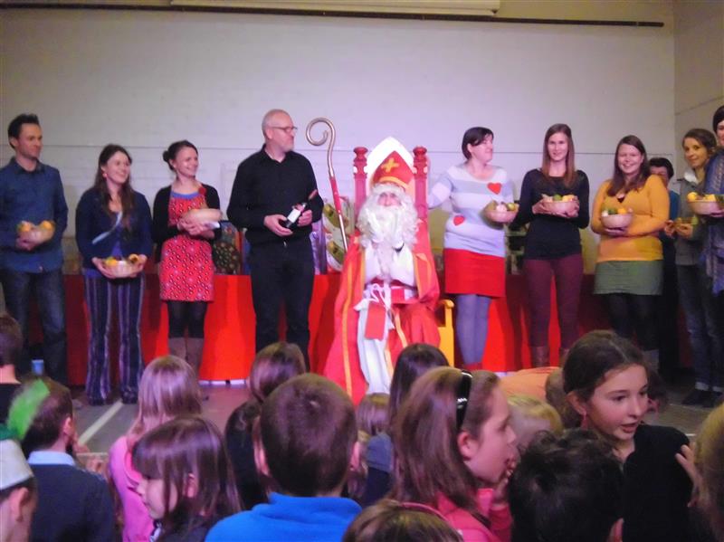 Sinterklaascomité. So You Think You Can Dance ! Zaterdag 30 november : The place to be: zaal De Spil! Met opgewonden kinderen, genietende ouders, een enthousiaste St.-Pietersschool en een schare medewerkers keek men uit naar de komst van de Sint. Ja, erg vroeg dit jaar, maar even welkom ! Zwarte Piet liet ons achteraf nog snel weten blij te zijn met de hulp. Hulp waarmee? Zwarte Piet is geselecteerd voor So You Think You Can Dance. Maar Zwarte Piet had het duidelijk wat onderschat. Het eerste deel van de vragenlijst viel nogal mee, maar dan: “Wat zeggen salsa, hofdans, rock and roll en disco jou?” Voor Zwarte Piet betekende dit niet veel, hij dacht aan exotische recepten en pasta’s. Gelukkig konden de kinderen met hun juffen Zwarte Piet laten zien waar het dan wel over gaat. Het oordeel achteraf van Zwarte Piet: de salsa doet hem direct denken aan Spanje, nogal veel zwaaien met de poep en misschien ook iets te weinig gekleed; de hofdans is stijlvol en elegant maar toch wat te strak; rock and roll daar heb je dan weer een danspartner bij nodig en welke andere Zwarte Piet zou hiervoor in aanmerking komen? Disco dan maar als stijl? Iets te veel bling bling of te gewaagd voor Zwarte Piet? ‘t Werd snel duidelijk, de pieten-move en de Sinterklaas-move zijn meer zijn ding! Daar gaat hij voor. Sinterklaas was duidelijk goed gebrieft door Zwarte Piet en beloonde de 100 aanwezige kinderen met een klein geschenkje en een zakje snoepgoed. Blije gezichten alom en daar doet sinterklaas het dan weer voor ! Tot volgend jaar !!! Terug St.-Pieter startpagina |