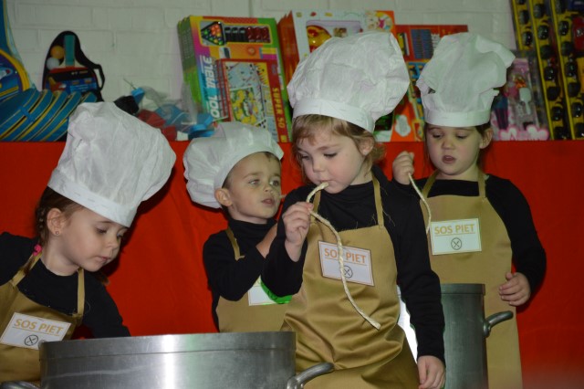 Sinterklaascomité. ZWARTE PIET ZOEKT EEN HOBBY! Opgewekte Piet Het is eens iets anders. Zwarte Piet is niet in paniek, alles verloopt volgens plan. het zoeken naar het juiste cadeau voor de kinderen, het inpakken, bezorgen, plannen. Niets lijkt het Sinterklaasfeest te kunnen verstoren. Terwijl Zwarte Piet nog snel wat opruimt vertelt hij toch dat wanneer het Sinterklaasfeest voorbij is en hij terug naar Spanje trekt met Sinterklaas, de verveling al eens toeslaat. En wat moet hij dan doen: iedere dag koffieklets houden of kaarten met de Sint, of languit niksen. Zwarte Piet weet best dat de Sint al wat ouder wordt en de rust wel kan gebruiken, maar zelf heeft hij nog veel energie. Misschien weten de kinderen wel een leuke hobby. Tips in overvloed Het ene optreden volgde het andere op en telkens werd een ander hobby voorgesteld. Een typecursus, zodat Zwarte Piet kan helpen bij het beantwoorden van de brieven / mails die de Sint krijgt. Of kookles met SOS Piet: chocomousse, speculaas en pannenkoeken. Mmm, maar wat vindt Conchita daarvan? Een cursus fotografie is nog een ander voorstel; zo kan Piet vanop de daken prachtige foto’s maken van landschappen, de sterrenhemel of de daken. Nogal stressvol en de hoofdpijn die hij van die flitsen krijgt. Misschien iets dat wat meer ontspant. Yogales is zo modern en vast de perfecte cursus voor Zwarte Piet. Of is dit iets te rustig? Zwarte Piet is zowaar in slaap gevallen. Het mag blijkbaar best iets actiever: boksen klinkt er opeens. "Je traint je spieren, je wordt er sterk van en je wordt de perfecte bodyguard van de Sint." Toch vindt zwarte Piet dat best gevaarlijk en misschien enkel voor in de boksring. Aangezien Zwarte Piet zo een levensgevaarlijk beroep heeft, is een cursus EHBO ideaal voor hem. Maar hoe stoer Piet wel is, hij kan niet tegen al dat bloed en het ergste vindt hij nog de mond-op-mond beademing! Misschien is het laatste voorstel nog het beste voor hem. Hij kent al Nederlands en Spaans. Zou een cursus Frans dan niks voor hem zijn? Wat het wordt dat horen we vast later nog wel, want hoog tijd ondertussen om de Sint te gaan halen, dat hebben ze hier wel dik verdient opnieuw. Toen kwam de Sint binnen… De kinderen en de juffen van de St.-Pietersschool hadden Piet meer dan voldoende geholpen om Sinterklaas binnen te halen en het jeugdig publiek met lekkers en speelgoed te laten verwennen. De sfeer loog er niet om. Iedereen was gelukkig: de meer dan honderd kinderen van onze parochie, hun ouders, de St.-Pietersschool, die een prachtspektakel op poten had gezet, het Sinterklaascomité, en niet het minst vooral Sinterklaas en Zwarte Piet. We houden hen aan hun belofte: VOLGEND JAAR KOMEN ZE GRAAG NOG EENS TERUG! Terug St.-Pieter startpagina |