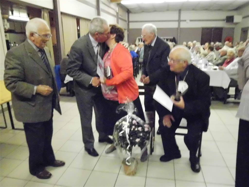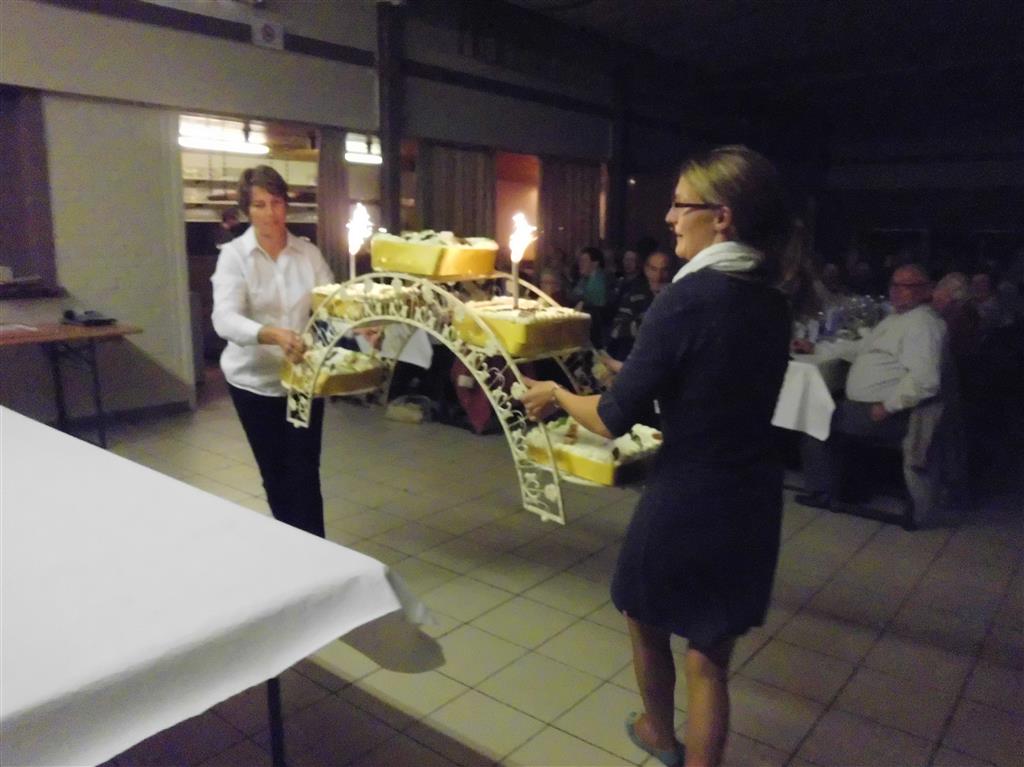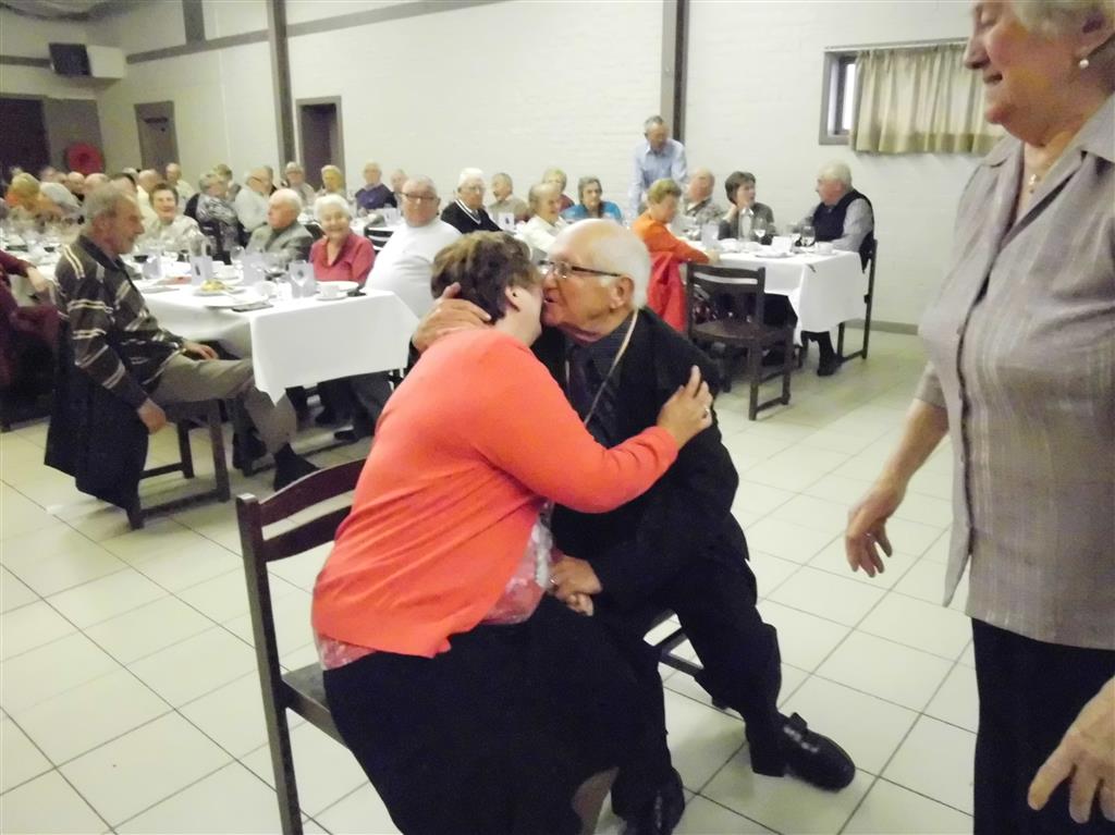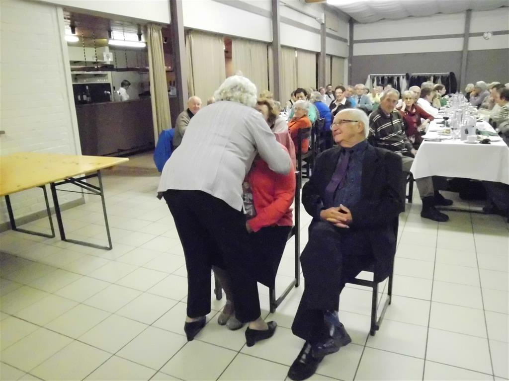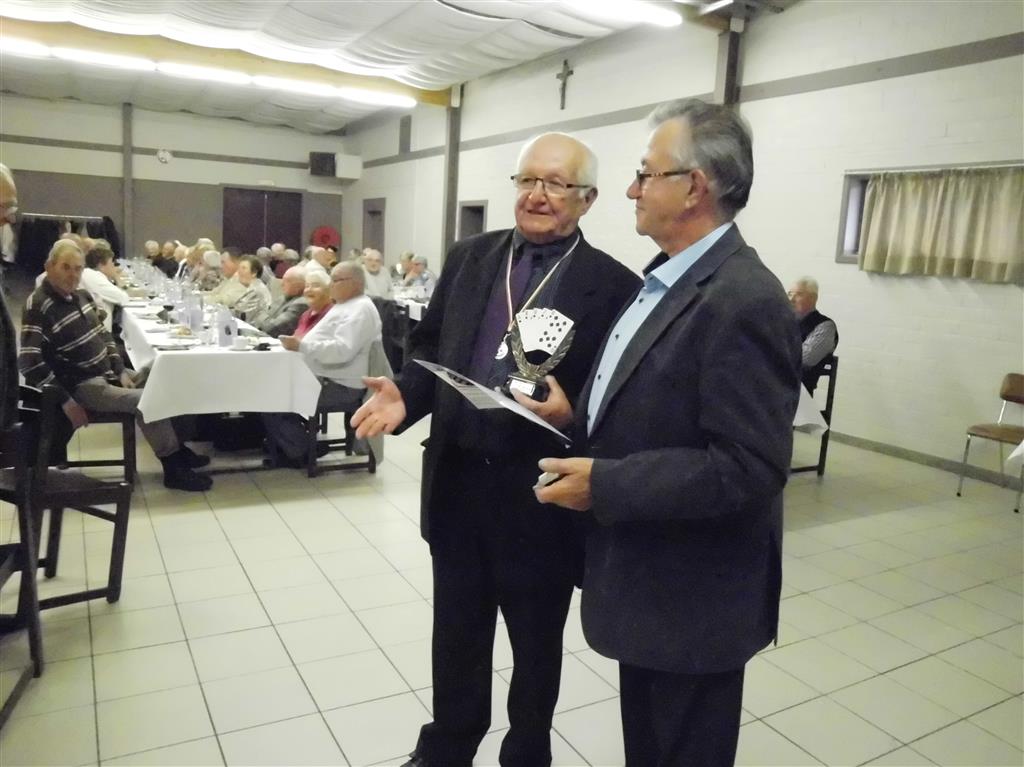 Kaartersclub 'St.-Pieter '. KAARTERS HULDIGEN KONINGSPAAR !Bij onze kaartersclub was er na 11 maanden kaarten, even de tijd om te ontspannen. Alle kaartersvrienden zakten af naar de parochiezaal 'De Spil' voor een fijn feestmaal ter afsluiting van het 23ste werkjaar. Dat bood ook de gelegenheid om het Kaarters-Koningspaar seizoen 2012-2013 toe te juichen: Koning Decock Etienne (met 214 punten) en Koningin Gerolfs Jeannette (met 105 punten). Zij worden geruggesteund door een glunderend bestuur (foto). En verder wil iedereen er opnieuw bij zijn vanaf donderdag 14 november om 14 u. Nieuwe leden worden, zonder toelatingsexamen, met open armen opgewacht. Tot dan! Terug St.-Pieter startpagina |