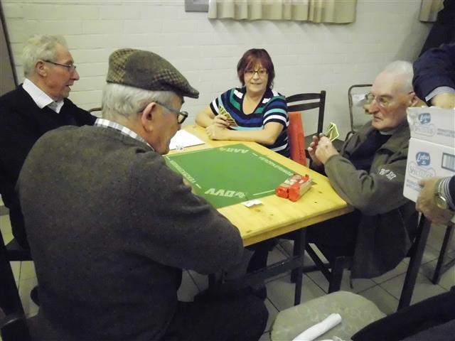 Kaartersclub 'St.-Pieter'. Lekkers van de Sint voor de kaarters!Traditiegetrouw had ook dit jaar de Sint de talrijk opgekomen kaarters niet vergeten. En of ze het zich lieten smaken. Terug St.-Pieter startpagina |