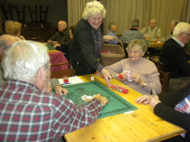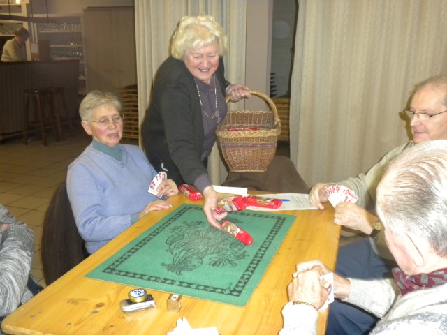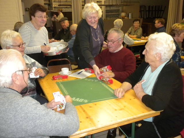 Kaartersclub 'St.-Pieter'. Sint voor de kaarters!Traditiegetrouw had ook dit jaar de Sint de opgekomen kaarters niet vergeten. Dankbaar en met de belofte om komend jaar weer flink te zijn namen ze het lekkers in ontvangst. Terug St.-Pieter startpagina |