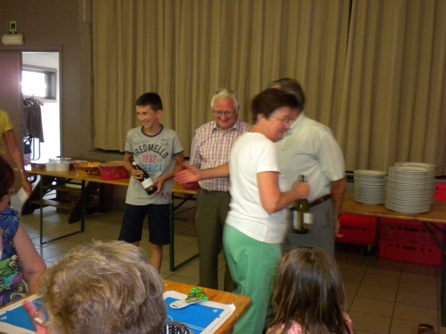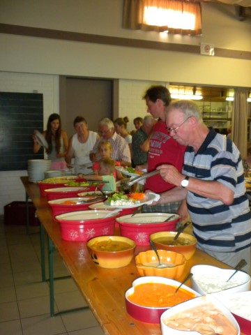 Spel- en dank namiddag 2014. VOLKSSPELEN EN BARBECUE. Donderdag 31 juli was er in de Spil het traditioneel dankfeestje voor alle liturgische medewerkers (koor, lectoren, kerkfabriek, parochieploeg,misdienaars, logistiek) en van de werkers van de St.-Pietersfeesten. Een smakelijke barbecue volgde op ons alom bekende volksspelen-parcours. MEDEWERKERS VAN ST-PIETER: BEDANKT!In de vorige (vakantie)nummers moesten we noodgedwongen een ‘voorwaardelijk’ verslag geven over onze activiteiten in de voorbije vakantieperiode. De St.-Pietersfeesten - tot en met de opruimdag met een werklustige schare werkers - verliepen vlot. Daarom was een bedankingsfeestje voor alle medewerkers van kerk en Spil ruim verdiend. Eerst traden zij in het strijdperk in de vorm van een volksspelenparcours. Hier de uitslag volgens de behaalde punten per leeftijdscategorie: Kleuters: 1. Jasper en Jacob, Lager onderwijs: 1. Olivia, 2. Sebbe, 3. Robbe. Dames: 1.Amber, 2. Coline, 3.Michèle. Heren: 1. Yent’l, 2.Liban, 3. Johny (foto). Daarna konden wij nog genieten van een heerlijke barbecue. De Sint-Pietersparochie dankt op die manier al haar medewerkers. Die houden onze parochie in leven. Dat alles moet ons voldoende oppeppen om het parochiewerk van het komende werkjaar met nieuwe moed en volgeboekte kalender aan te vatten... |