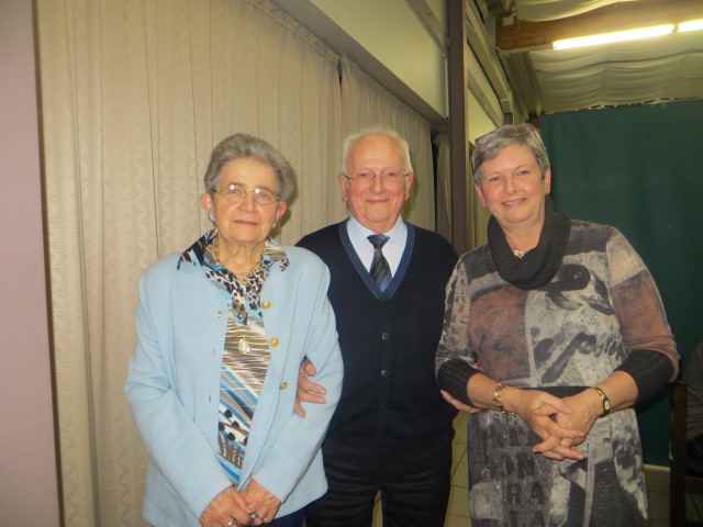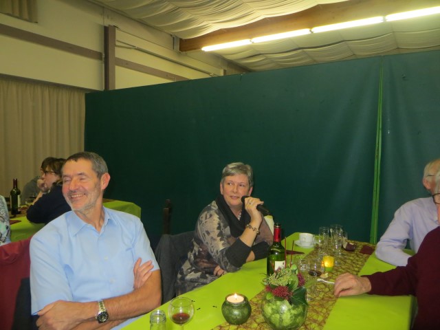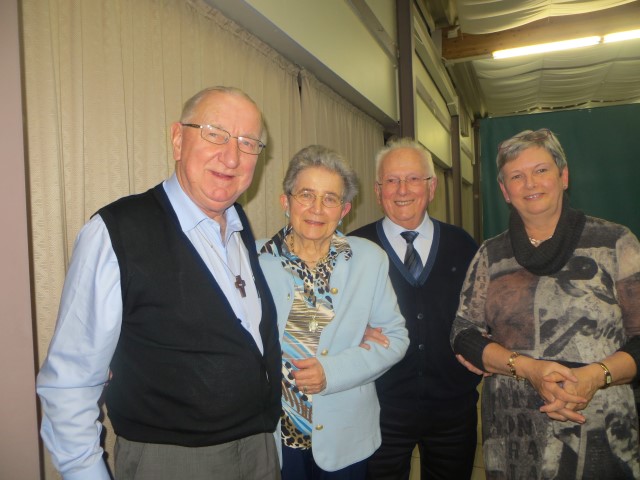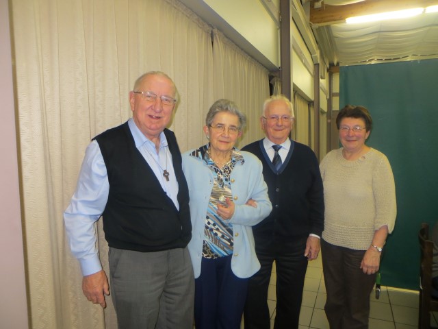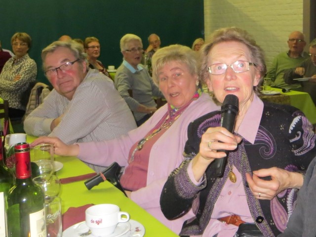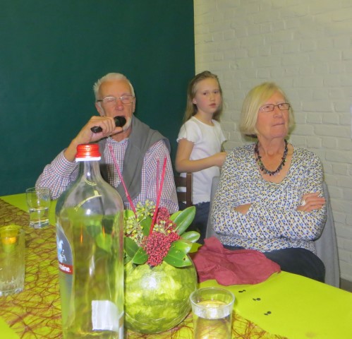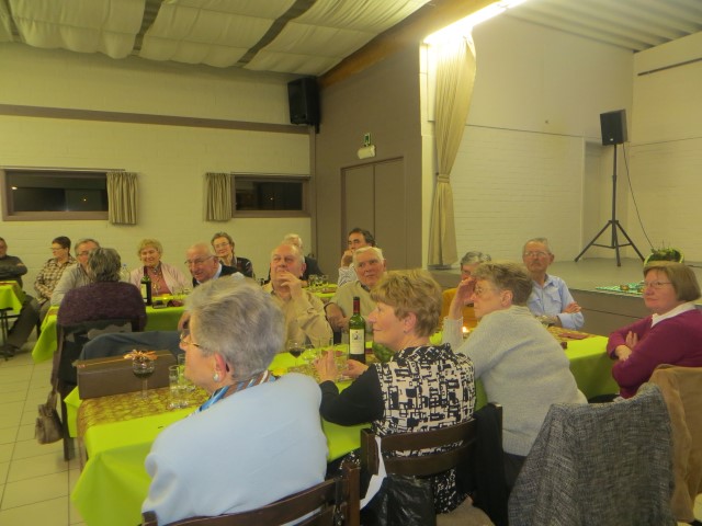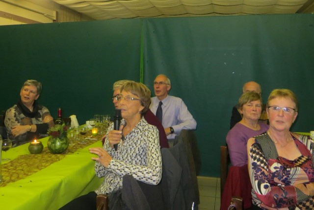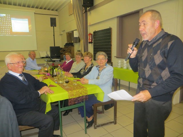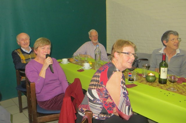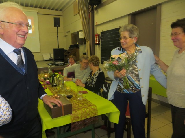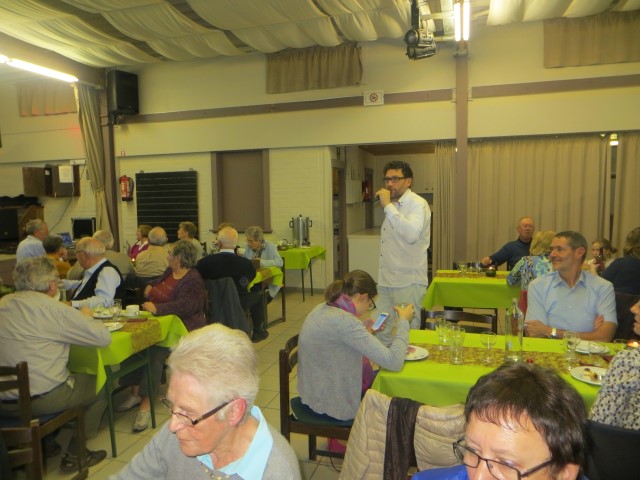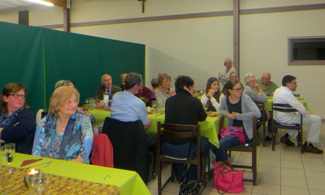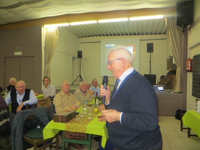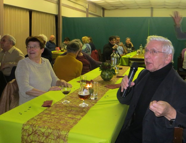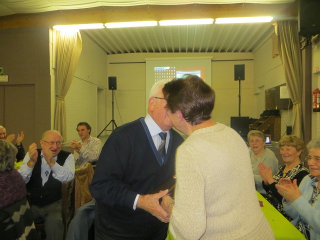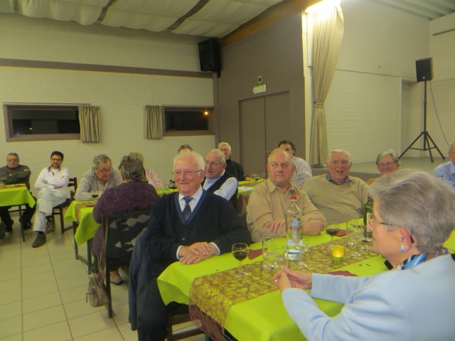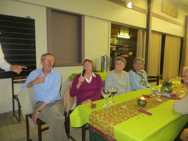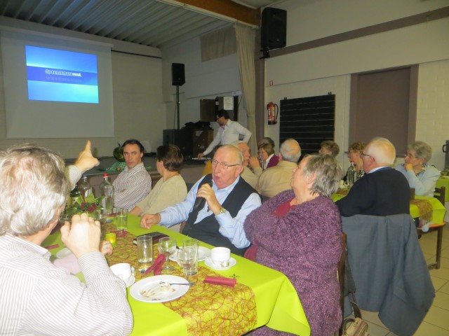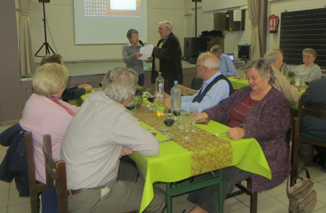 St.-Ceciliafeest 2014. LOF VOOR HENRI LAMMENS TIJDENS CECILIAFEEST. Vrijdag 14 november vond in de Spil het Ceciliafeest plaats voor alle medewerkers van de liturgie. Een weekje vroeger dus dan gewoonlijk. Maar het ging er niet minder gezellig en vrolijk aan toe. We werden tijdens het aperitief reeds opgewarmd door enkele hartversterkende verzen van Maggy. Daarna viel niet alleen het menu in de smaak, ook de karaoke, kundig geanimeerd door Jean-Pierre, vond flink wat bijval. Bijna alle ‘tafelgangers’ lieten individueel en gezamenlijk hun zoetgevooisd stemgeluid horen met de woorden op het scherm. Maar het mooie moment was ongetwijfeld de hulde die HENRI LAMMENS in ontvangst mocht nemen voor zijn 21-jarig dienstwerk als lector en ceremoniaris tijdens de uitvaarten in onze kerk. Hij deed dat stijlvol en authentiek tijdens 444 vieringen. Tevens werd hij aangesproken als ere-voorzitter van de Kerkfabriek van de St.-Pietersparochie. In de tafelrede van Gaby werd ruim ingegaan op de verdiensten van deze sterk geëngageerde medeparochiaan die Henri is en blijft. Wij zijn hem daarom oprecht dankbaar. St.-Pieter startpagina |
