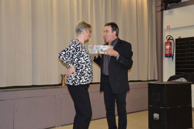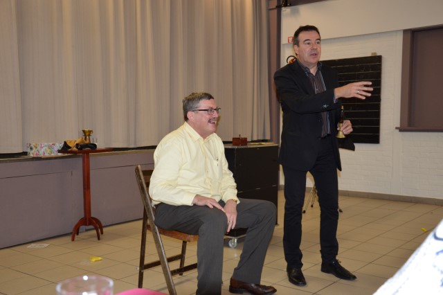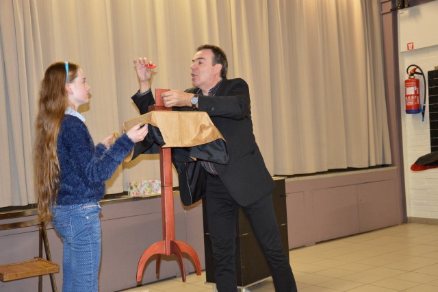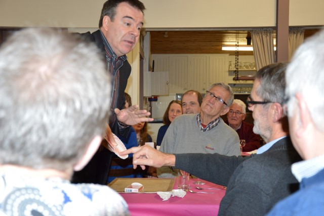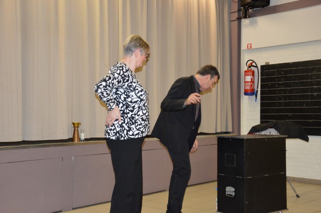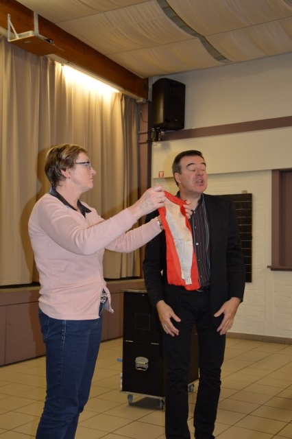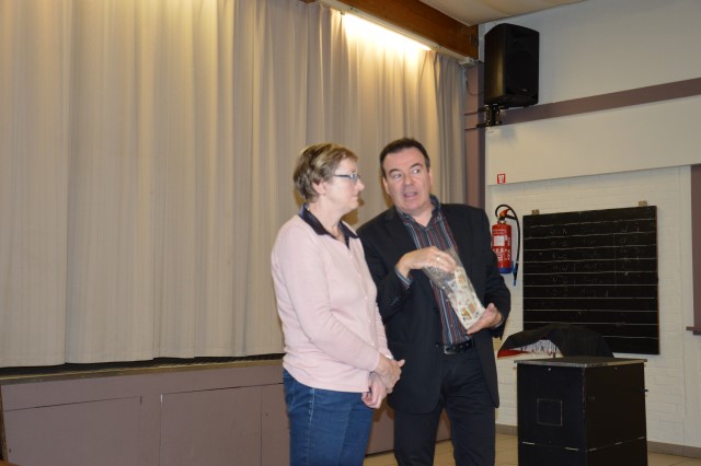 St.-Ceciliafeest 2017. LITURGISCHE MEDEWERKERS IN FEEST. Vorige vrijdag verzamelden een 50-tal liturgische medewerkers in De Spil voor een feestavond ter gelegenheid van het St.-Ceciliafeest. Het is een prachtige avond geworden. Het aperitief en een rijkelijk menu van de ‘Pepermolen’ werden gesmaakt, evenals de fijne tafelversiering. De avond kon niet meer stuk door het geweldig geapprecieerde optreden van goochelaar en illusionist Koen Bossuyt. Met een subliem optreden palmde hij de harten van het publiek in. De man wist met een goede timing en een fijn inspelen op zijn publiek zijn originele trucs aan de man te brengen, pretentieloos maar professioneel. Alweer een onvergetelijke avond in de Spil van St.-Pieter. St.-Pieter startpagina |