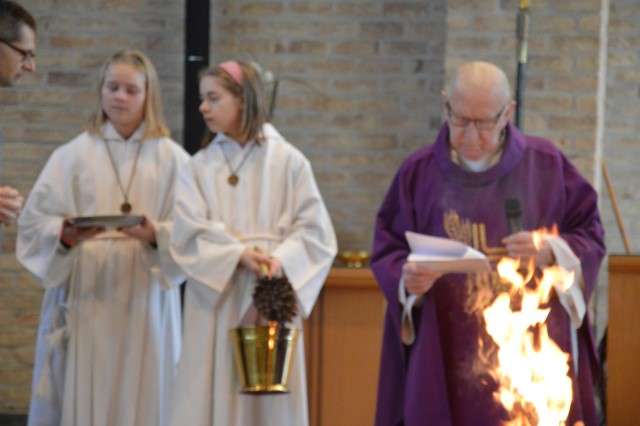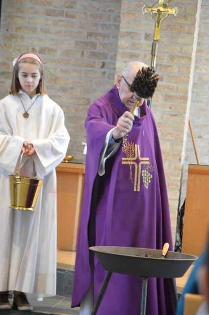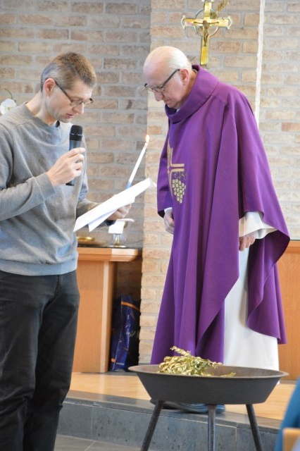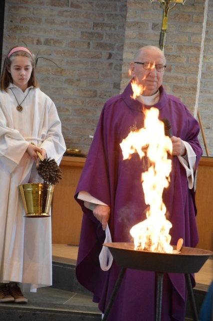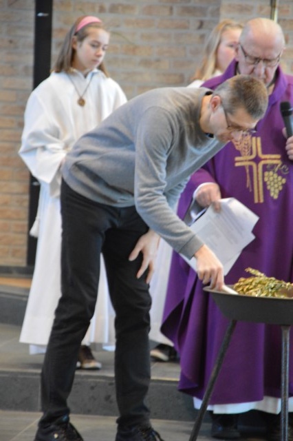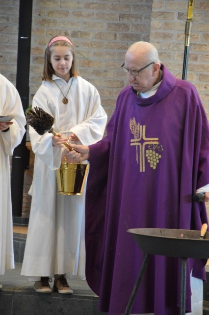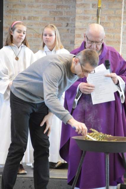 Askruisje 2018. ASKRUISJE OP ZONDAG Tijdens de viering van de 1ste zondag van de veertigdagentijd vond de palmverbranding en aswijding plaats met de uitreiking van het askruisje. In de goed-bijgewoonde viering was ook het thema van Broederlijk Delen mooi verwerkt. De vastenactie helpt deze keer de arme boeren uit Oeganda en stelt de vraag: ‘Wat staat er op het menu?’ Het eerste ingrediënt ‘Verbondenheid’ gaf smaak aan een zinvol liturgisch gebeuren. Wij mochten ook de actieve deelname van de vormelingen ervaren. Op die manier kwam jong en oud weer in voeling met het ritueel van het askruisje, waaraan velen niet (meer) deelnemen op de doordeweekse Aswoensdag. Hoogdagen St.-Pieter startpagina |