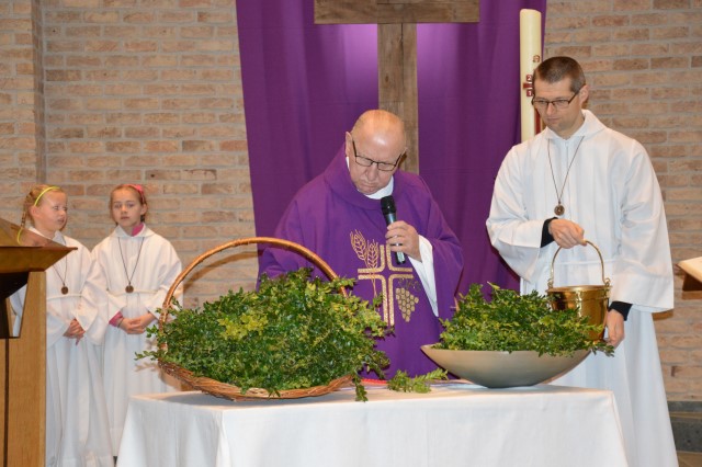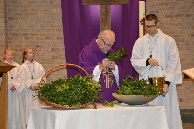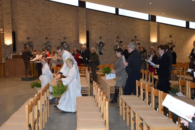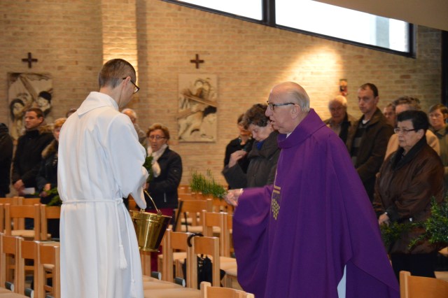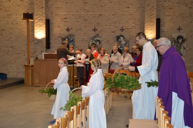 PALMZONDAG: VOLKS EN DOORLEEFD. ‘Lauda Jerusalem Dominum, lauda Deum tuum Sion…’. Woord en melodie van dat oude volkse processielied uit onze jeugd klonk toch ons bekend in de oren. Een stemmige palmwijding, de indringende lectuur van het passieverhaal, het raakte allemaal het hart. De homilie van pastoor André vulde de sfeer zeer treffend aan. De hele viering werd een fijn samenspel van volkse devotie rond de palmtakjes en een doorleefde liturgie met passende teksten en liederen. Palmzondag St.-Pieter startpagina |