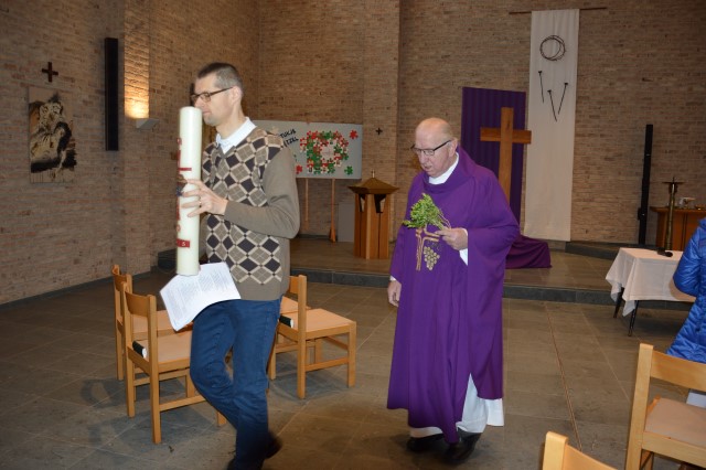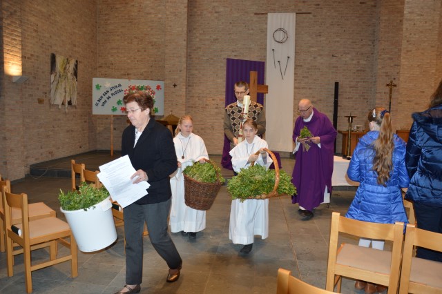 MET PALMEN HEM TEGEMOET. “Gezegend de Koning die komt in de naam van de Heer” (Lc 19). Neen, het lied verstomde niet en de ‘stenen hoefden niet te roepen’. Velen, aangezongen door het koor dat de palmliturgie mooi ondersteunde, vonden het vorige Palmzondag de moeite om ‘met palmen in de hand Heer tegemoet te gaan.’ Stil werd daarna het Passieverhaal beluisterd. ‘Heden hosanna, morgen kruisig hem!...’ Palmzondag St.-Pieter startpagina |