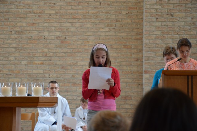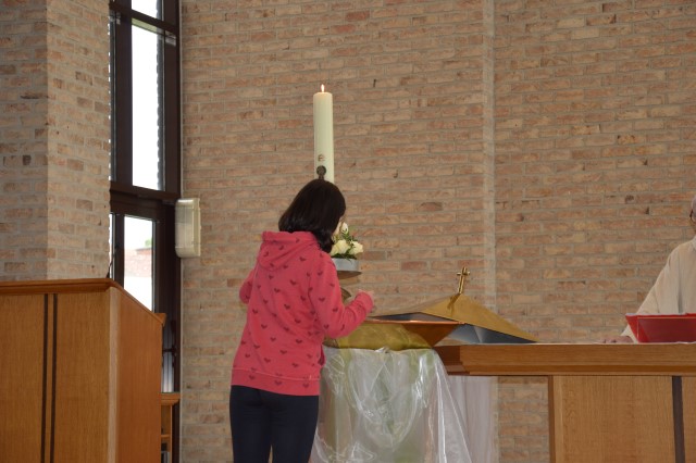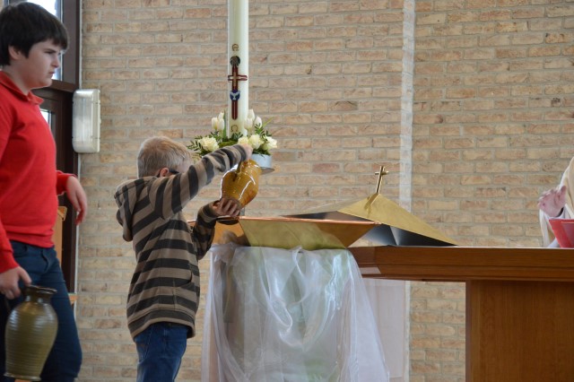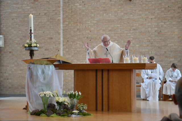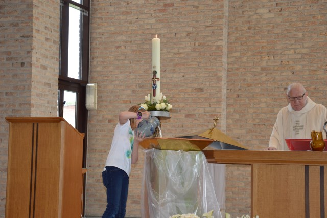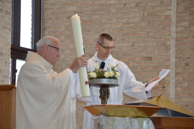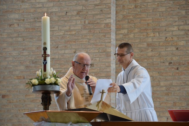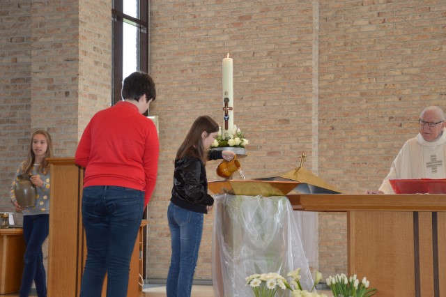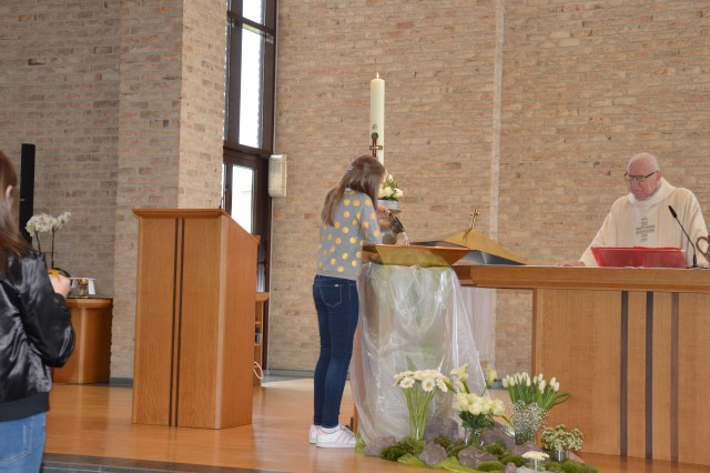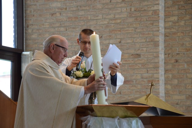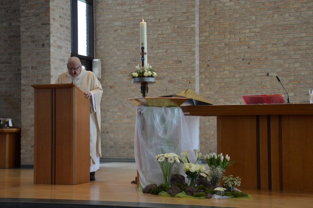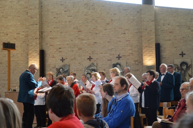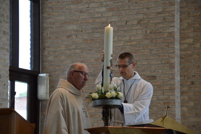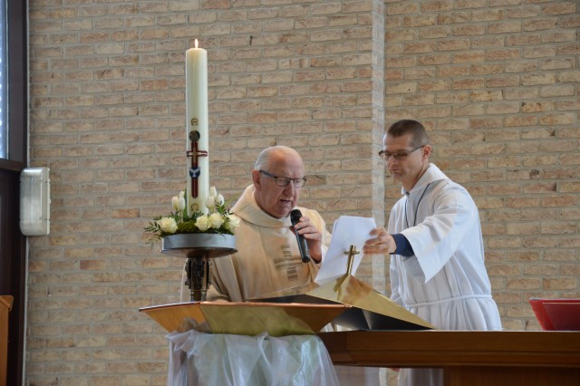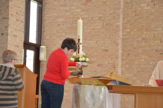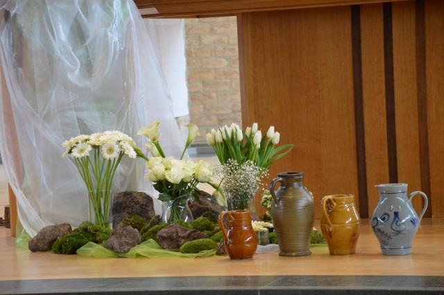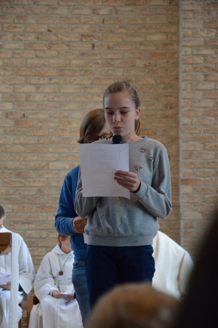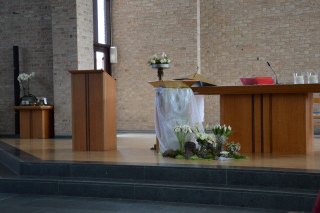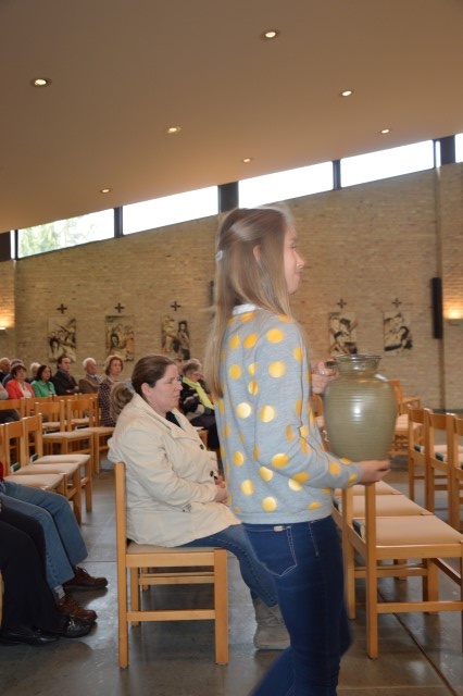 FEEST VAN JEZUS’ VERRIJZENIS. Paasmorgen. 9 u. Het St.-Pieterskoor “kondigt het jubelend aan†in een meerstemmige en gevarieerde zetting van het bekende lied. Sterke teksten, authentieke paasliederen en een symbool-rijke decoratie versiering kruiden de feestelijke paasviering. In de inleiding klinken hoopvolle woorden: God heeft ons in Jezus laten zien dat het leven sterker is dan de dood, dat de liefde het kwaad overwint. Omdat ons verstand dat niet zomaar kan vatten lieten wij ons in de viering meenemen door de getuigenissen van Maria Magdalena door het woord van Petrus. Daarom kunnen wij met overtuiging onze doopbeloften hernieuwen en ons laten besprenkelen met het nieuwe doopwater, aangebracht door onze vormelingen. Tot ieders voldoening was er een goede opkomst en bijval. Dat heeft ook de hele liturgische groep en met name ook het koor mogen ervaren. Een echte paaservaring. Na de viering kon de gelovige gemeenschap nog prettig gezellig bijpraten tijdens een welverdiende receptie. St.-Pieter startpagina |