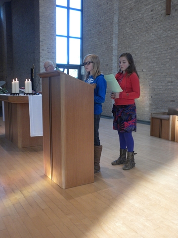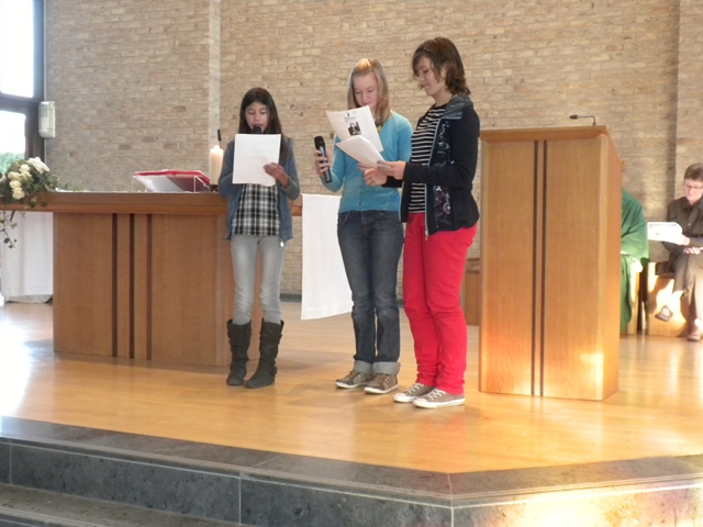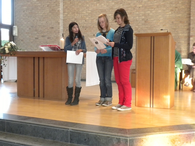 KRING 12 SAMEN MET ZIEKENZORG. De eerste maandelijkse jeugdviering van 14 okt. verliep traditioneel samen met Ziekenzorg, ter gelegenheid van de nationale ziekendag. Wij kregen dan ook een mooie mix aan teksten die zinvol aansloten bij het thema “chronisch ziek-zijn”. Nog een beetje onwennig namen onze kersverse jonge kandidaat-vormelingen plaats achter de microfoon, maar dat gaf de viering net dat ontwapenende tintje meer. De viering werd afgesloten met een mooi complimentje van pastoor André voor de ziekenzorgkern en de vormelingen. Een receptie en de opbrengst van de wenskaartenverkoop was een aangenaam toetje. En daarna… op naar het stembureel! St.-Pieter startpagina |