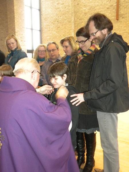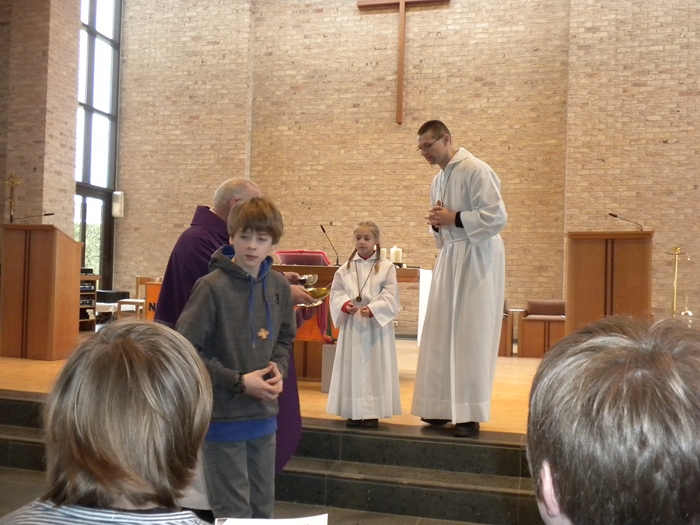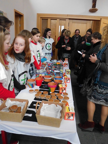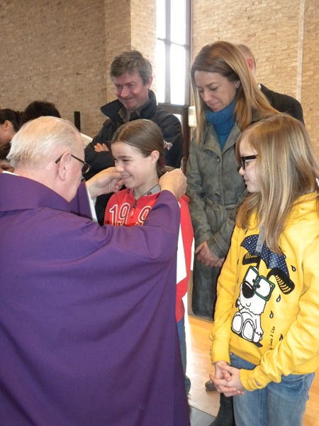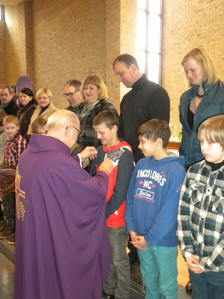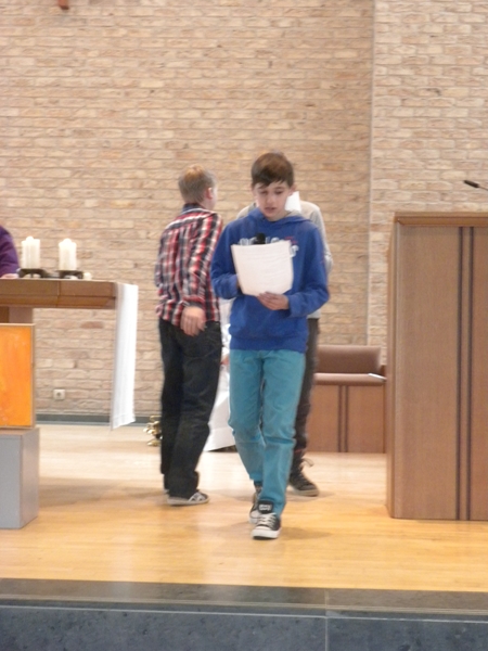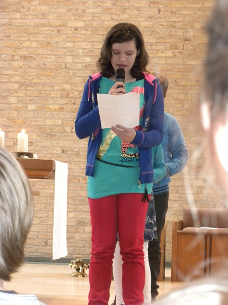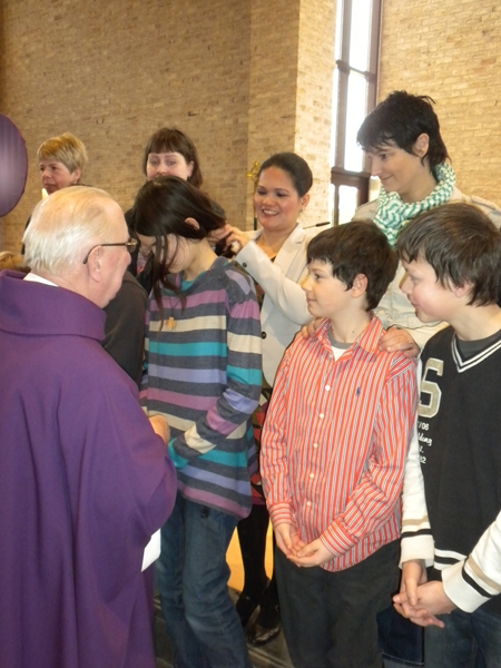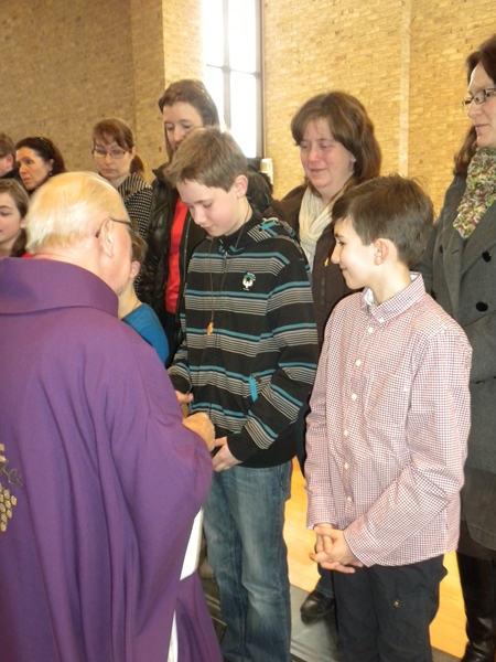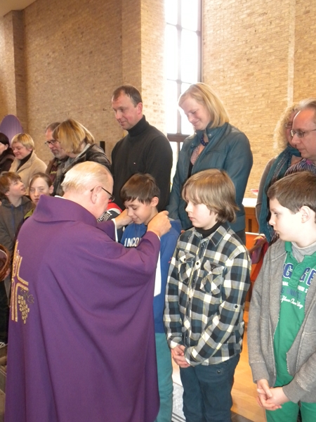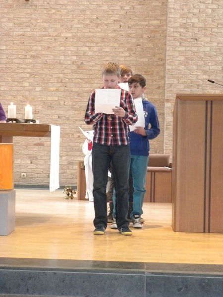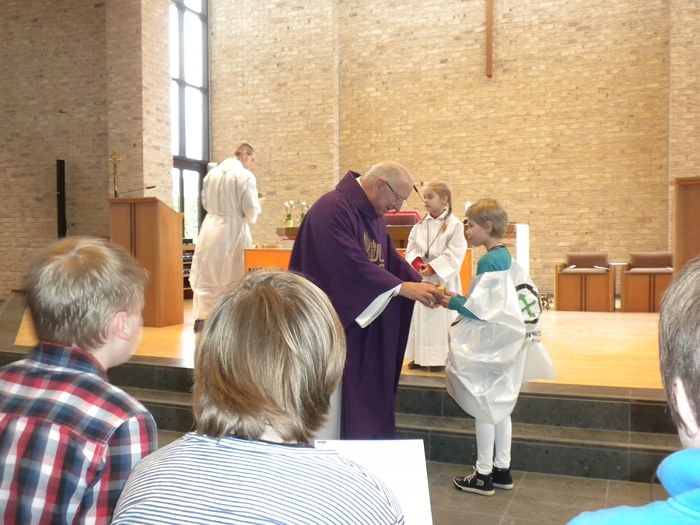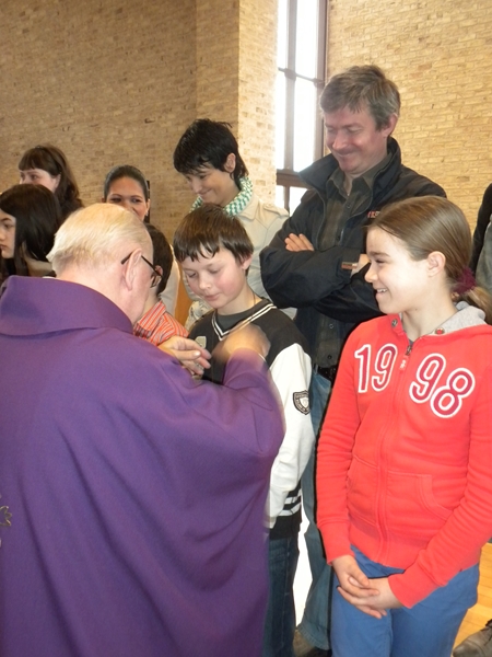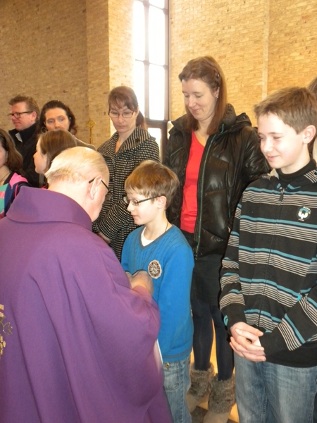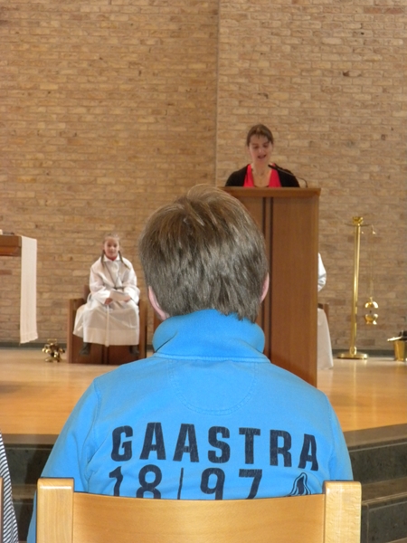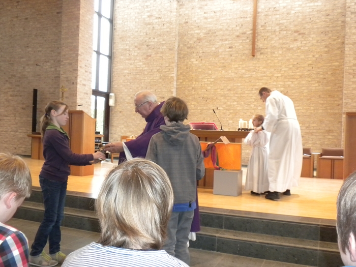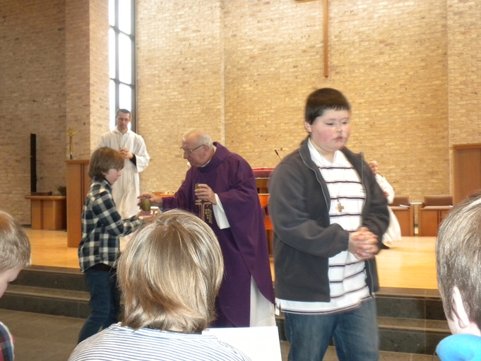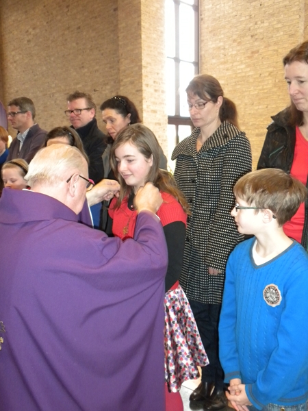 VLIEG MET ONS MEE… Zo zongen onze vormelingen het de voorlaatste keer uit in hun themalied t.g.v. de kruisjesgave. Tijdens de viering ontvingen zij het waarmerk van hun christelijk engagement: het kruisje. Dat herinnert hen eraan dat zij op een “kruispunt” komen in hun leven. Het plaatst deze jongeren voor de keuze of ze de route die God voor hen gekozen heeft, ook echt willen volgen. Het kruis (+) is ook een pluspunt: een teken dat we mensen bij elkaar willen optellen, en dat iedereen meetelt. 'Plus' wil ook zeggen: 'positief', en zo nodigt het kruisteken uit vooral het positieve in de wereld te zoeken, de positieve dingen een duwtje in de rug te geven. De viering verliep andermaal hartelijk, stijlvol en vlot. Wij werden geboeid, niet alleen door het ritueel, de teksten en liederen, Het samenzijn stond uiteraard in het teken van deze vastenactie: concreet gebeurde dit met een (eerste) collecte en de verkoop van knutselwerk door de vormelingen. Later brengen we het globale resultaat van al onze solidariteitsacties. St.-Pieter startpagina |