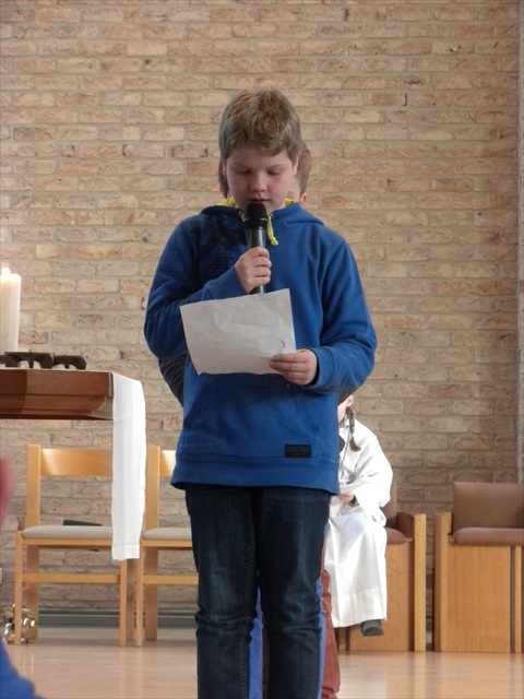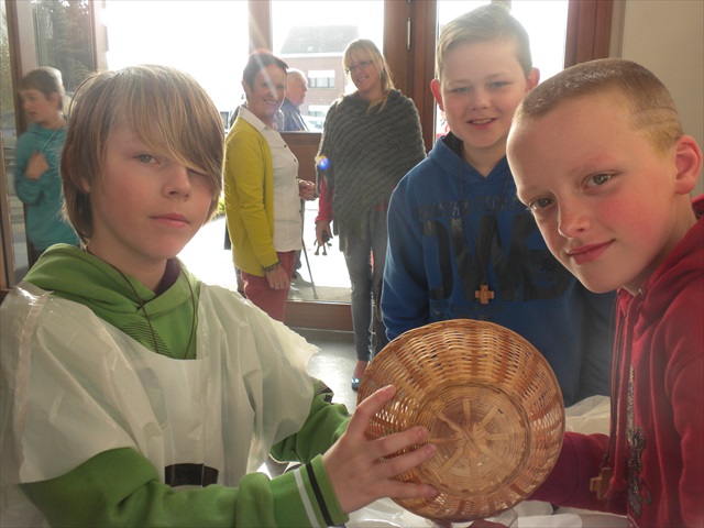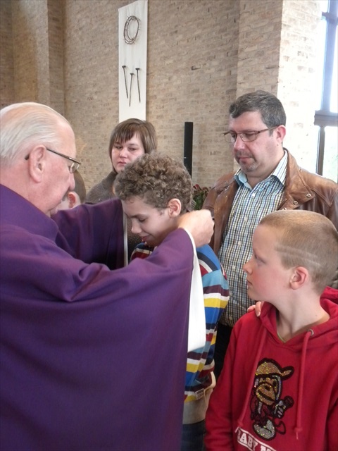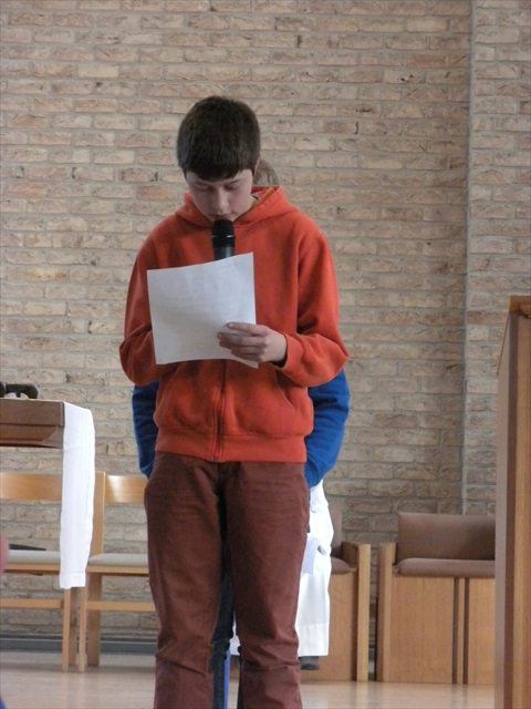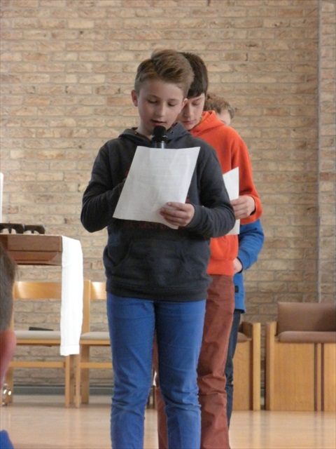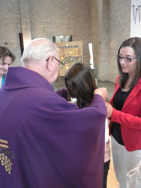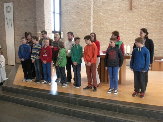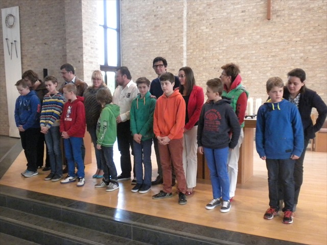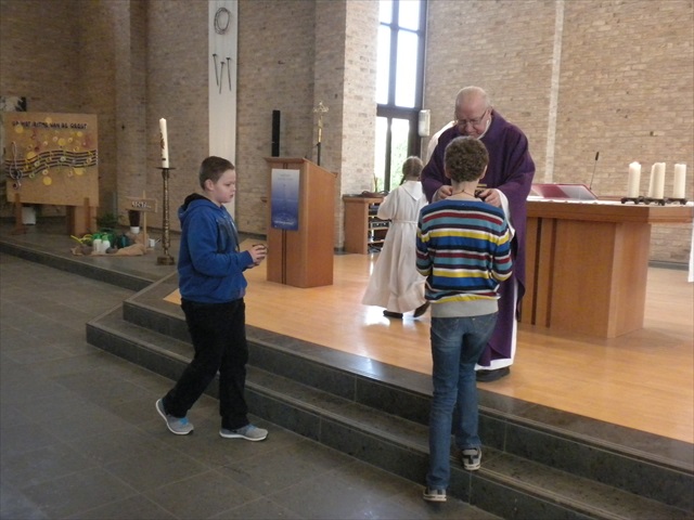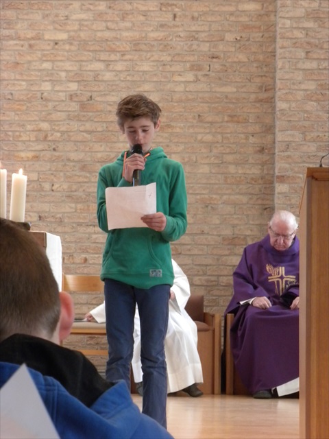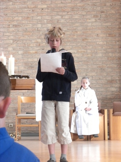 VORMELINGEN OP HET KRUISPUNT Tijdens de viering van de kruisjesgave ontvingen onze vormselkandidaten het waarmerk van hun christelijk engagement: het kruisje. Dat herinnert hen eraan dat zij op een “kruispunt” komen in hun leven. Het plaatst deze jongeren voor de keuze of ze de route die Jezus voor hen gekozen heeft, ook echt willen volgen. De viering verliep andermaal stijlvol en vlot. Ieder werd geboeid door het mooie ritueel, de teksten en liederen. Ook en vooral stond Broederlijk Delen in de kijker. Concreet gebeurde dit met een (eerste) collecte en de verkoop van knutselwerk door de vormelingen. Dezen hadden al een mooi bedrag bijeengehaald met hun actie op de grote Markt (zie Kerk en Leven nr. 13 van 26 maart) Later brengen we het globale resultaat van al onze solidariteitsacties. Het campagnelied van de vastenactie, dat als tussenzang was te horen, was dan ook op zijn plaats. Plant met ons de toekomst mee van ieder om ons heen. We roepen samen MANGI FI. We zijn hier niet alleen. O— plant met ons de toekomst mee van ieder om ons heen. We roepen samen MANGI FI. We zijn hier niet alleen. O—oh wé oh yo-o-o-lo wé oh… St.-Pieter startpagina |