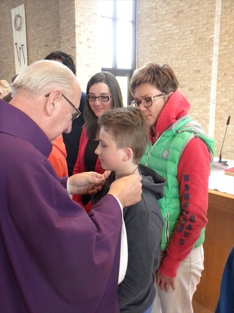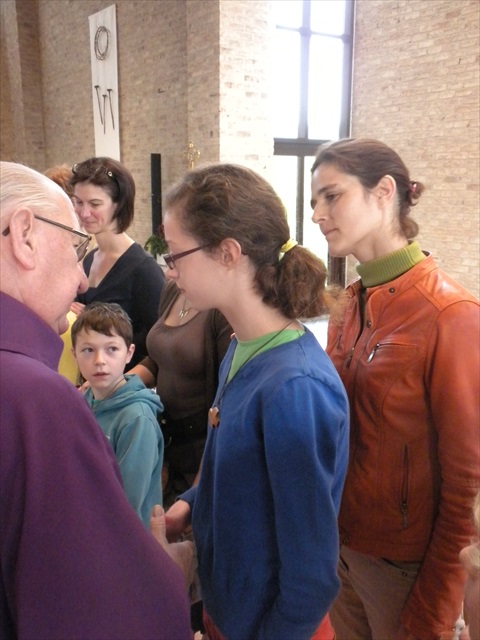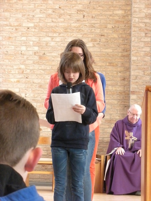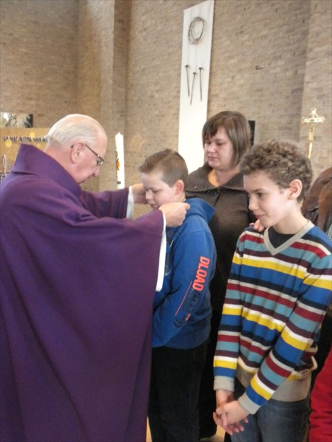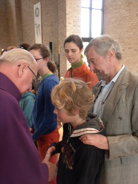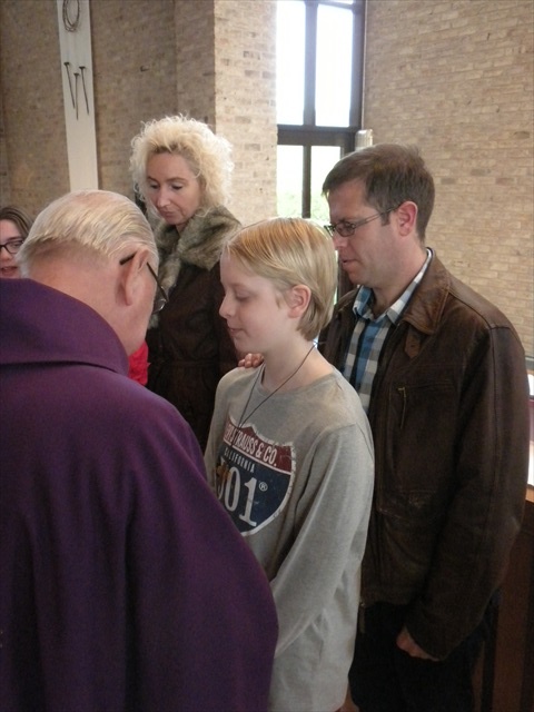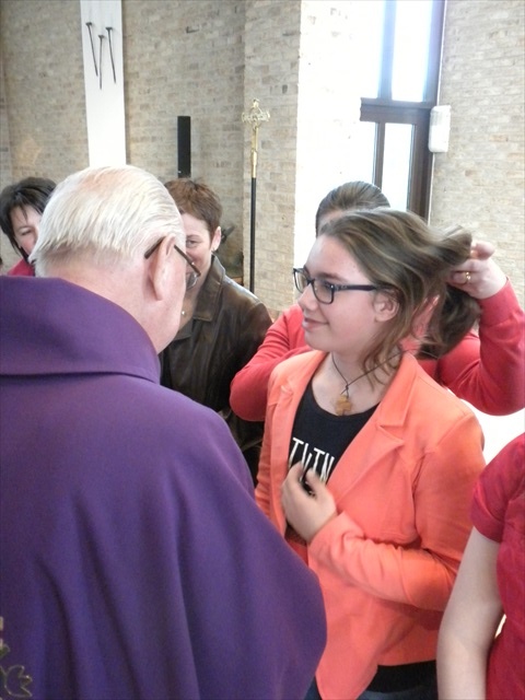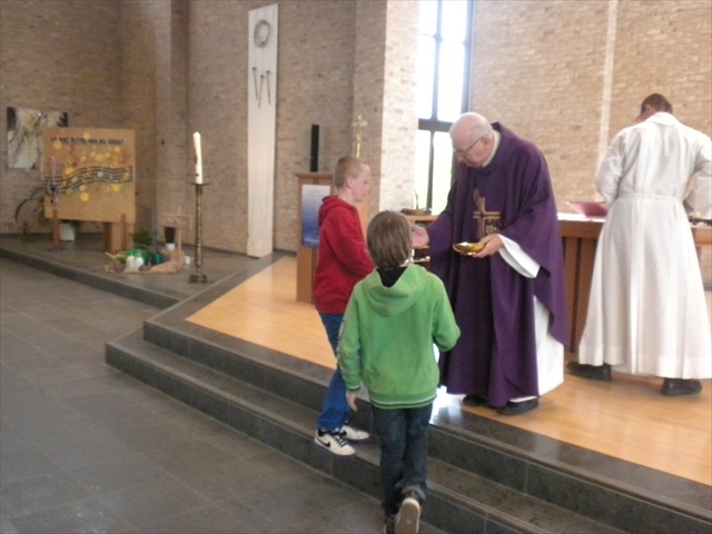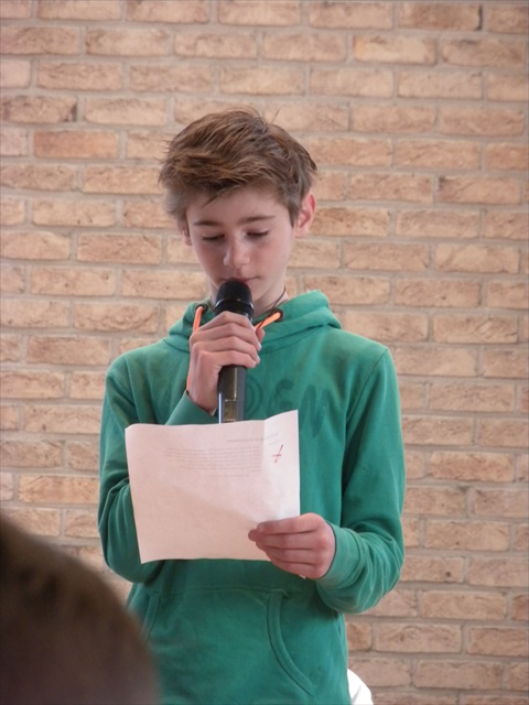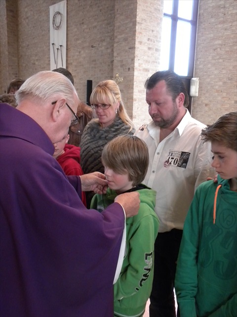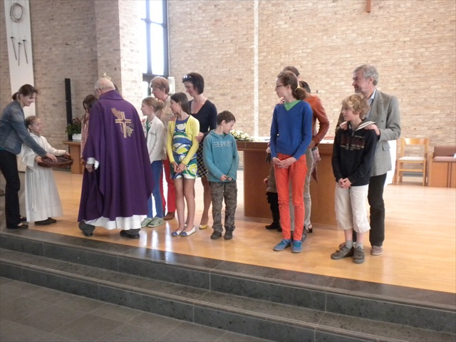 VORMELINGEN OP HET KRUISPUNT Tijdens de viering van de kruisjesgave ontvingen onze vormselkandidaten het waarmerk van hun christelijk engagement: het kruisje. Dat herinnert hen eraan dat zij op een “kruispunt” komen in hun leven. Het plaatst deze jongeren voor de keuze of ze de route die Jezus voor hen gekozen heeft, ook echt willen volgen. De viering verliep andermaal stijlvol en vlot. Ieder werd geboeid door het mooie ritueel, de teksten en liederen. Ook en vooral stond Broederlijk Delen in de kijker. Concreet gebeurde dit met een (eerste) collecte en de verkoop van knutselwerk door de vormelingen. Dezen hadden al een mooi bedrag bijeengehaald met hun actie op de grote Markt (zie Kerk en Leven nr. 13 van 26 maart) Later brengen we het globale resultaat van al onze solidariteitsacties. Het campagnelied van de vastenactie, dat als tussenzang was te horen, was dan ook op zijn plaats. Plant met ons de toekomst mee van ieder om ons heen. We roepen samen MANGI FI. We zijn hier niet alleen. O— plant met ons de toekomst mee van ieder om ons heen. We roepen samen MANGI FI. We zijn hier niet alleen. O—oh wé oh yo-o-o-lo wé oh… St.-Pieter startpagina |