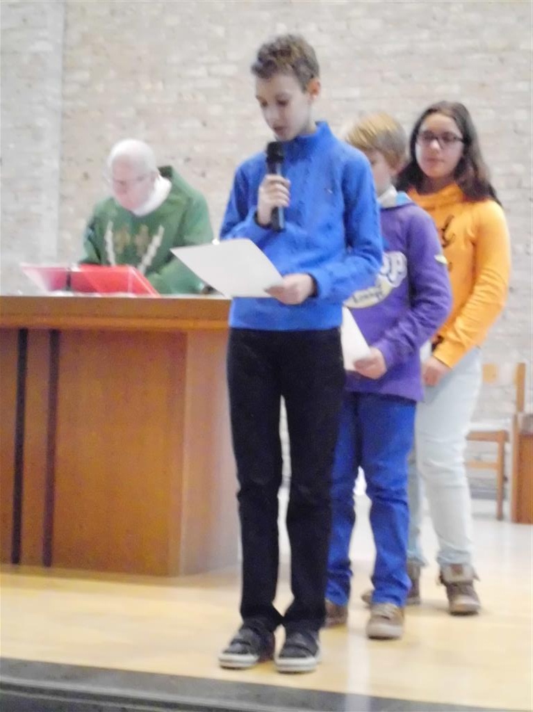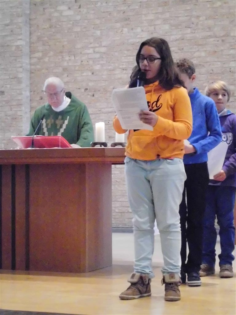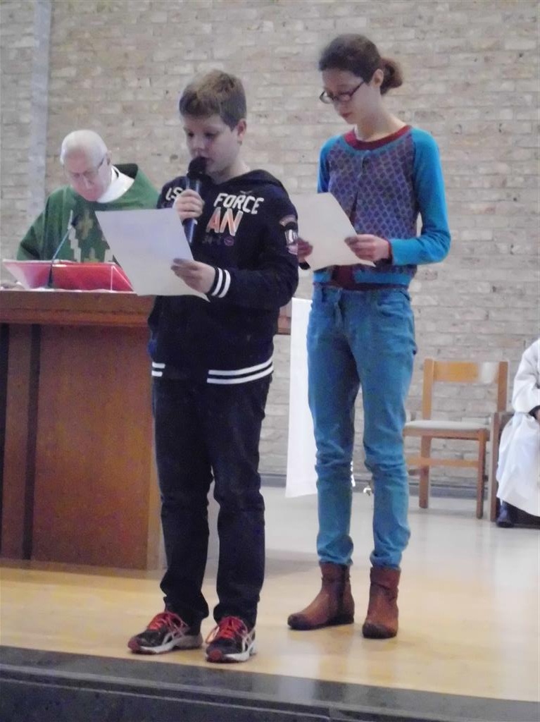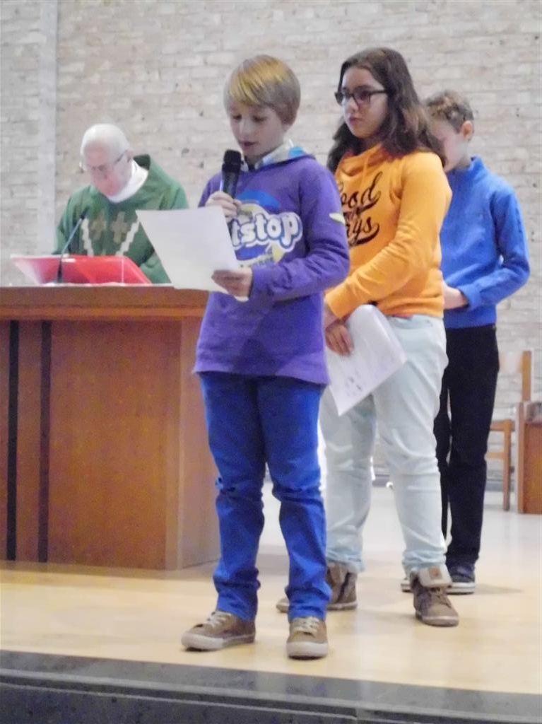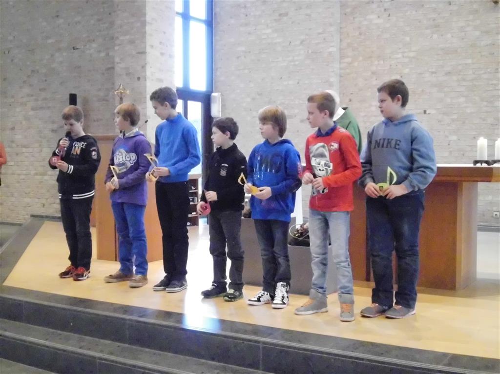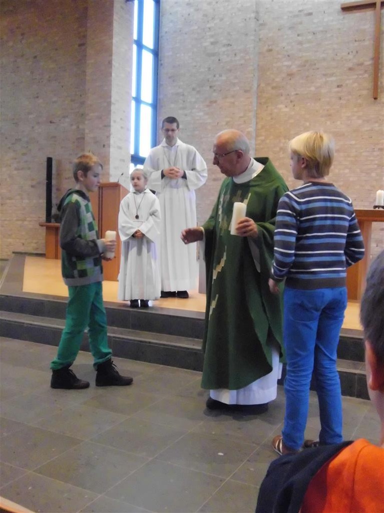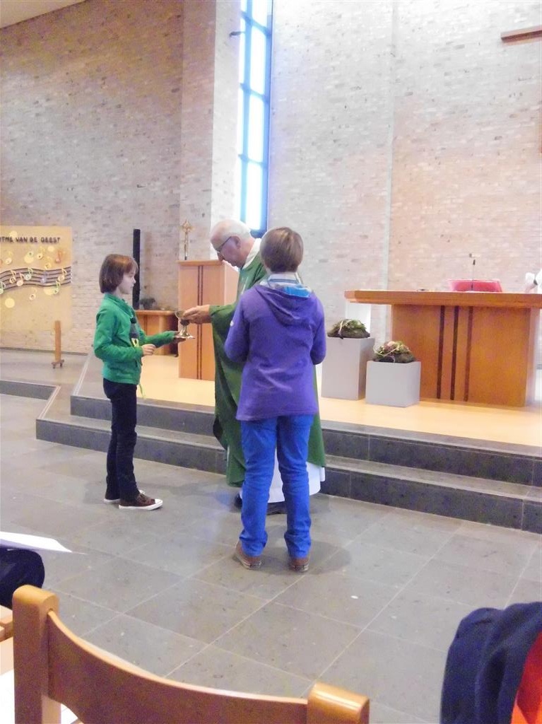OP HET RITME VAN DE GEEST ! Op het ritme van de Geest is het jaarthema van onze vormselcatechese. Op zondag 10 november kwamen 3 catechisten, 21 vormelingen en hun ouders vol enthousiasme naar de St.-Pieterkerk. Met mooie teksten en aangepaste liederen werd het een sfeervolle eucharistieviering waarin de vormelingen hun naam opgaven. Daarmee lieten ze zien dat ze bereid zijn Jezus te zoeken, en hun doopbeloften concrete gestalte te geven.Het is een eerste grote stap naar het vormsel toe. De ganse parochiegemeenschap steunt hen en hun ouders bij deze belangrijke beslissing. Proficiat dus. St.-Pieter startpagina |