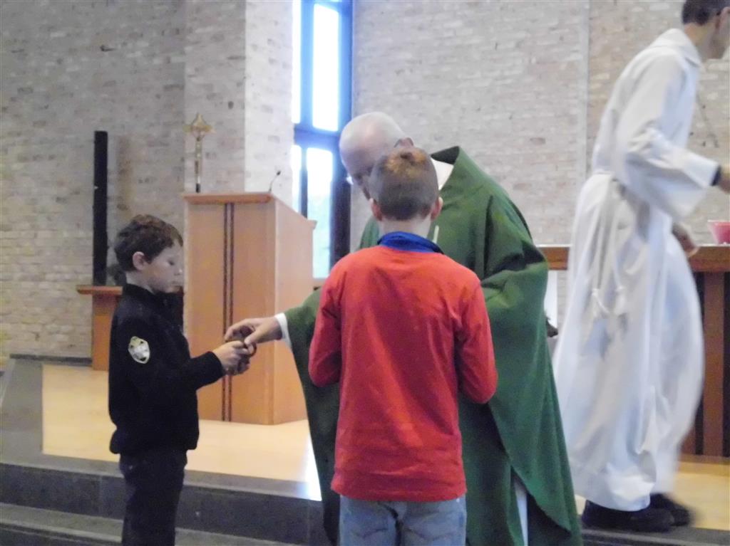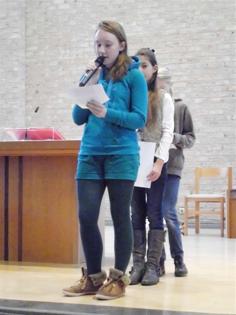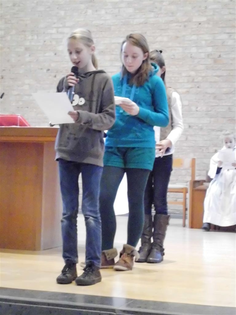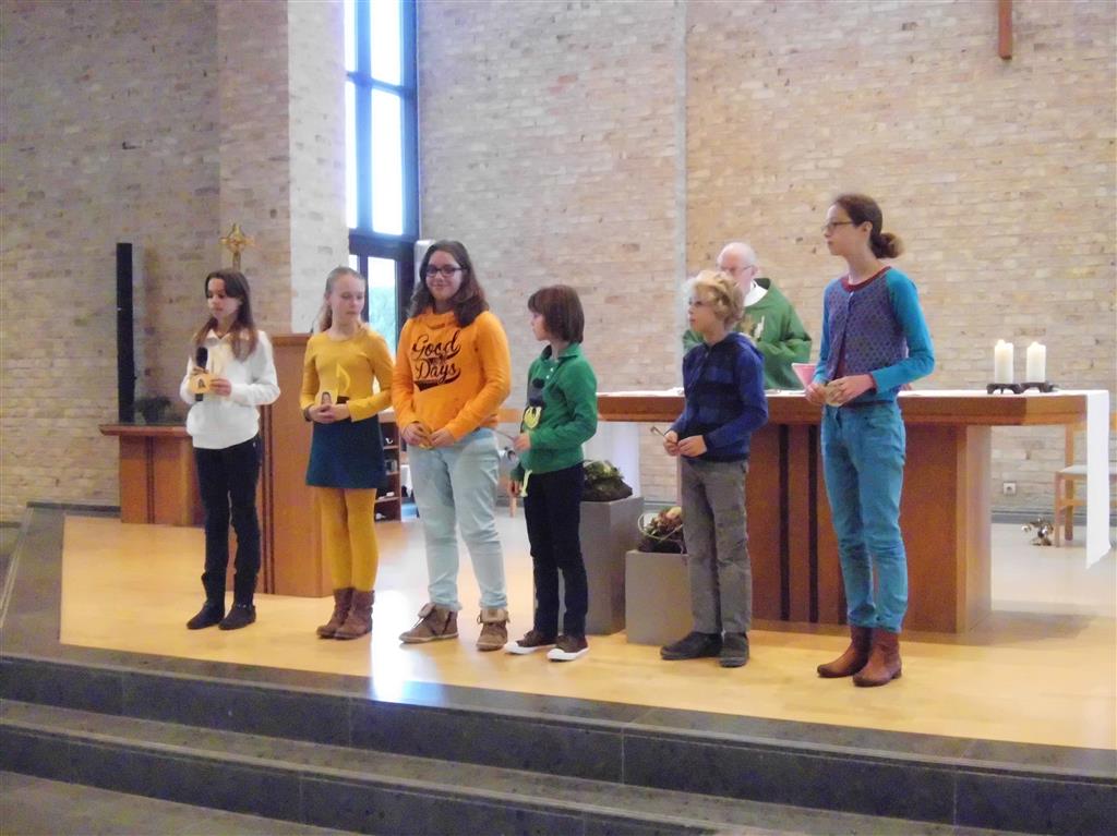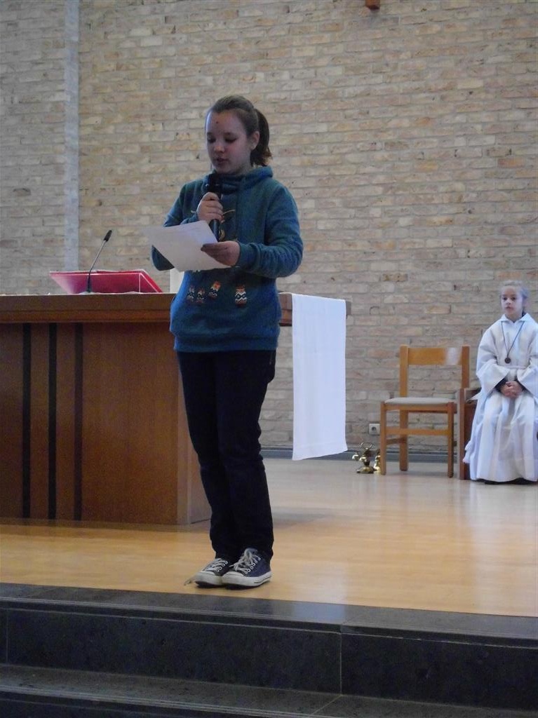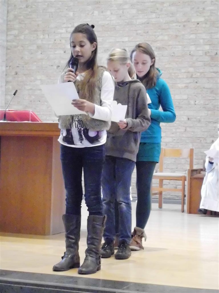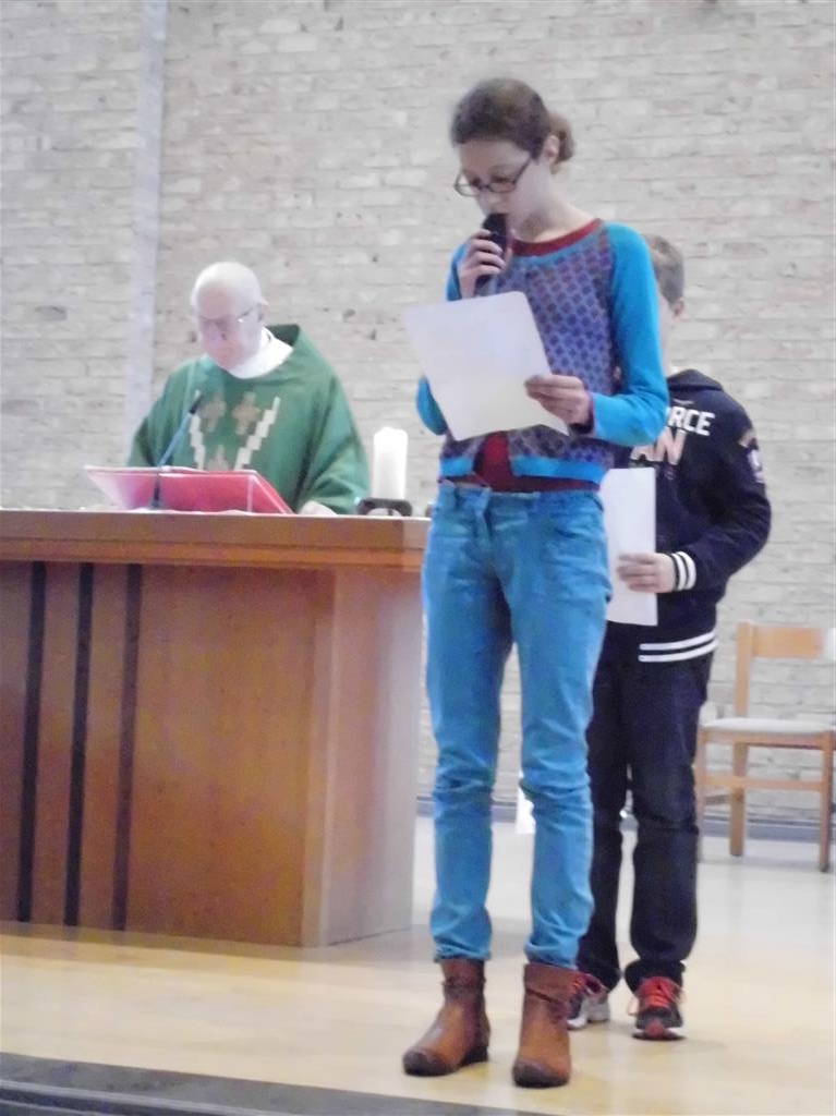 OP HET RITME VAN DE GEEST ! Op het ritme van de Geest is het jaarthema van onze vormselcatechese. Op zondag 10 november kwamen 3 catechisten, 21 vormelingen en hun ouders vol enthousiasme naar de St.-Pieterkerk. Met mooie teksten en aangepaste liederen werd het een sfeervolle eucharistieviering waarin de vormelingen hun naam opgaven. Daarmee lieten ze zien dat ze bereid zijn Jezus te zoeken, en hun doopbeloften concrete gestalte te geven.Het is een eerste grote stap naar het vormsel toe. De ganse parochiegemeenschap steunt hen en hun ouders bij deze belangrijke beslissing. Proficiat dus. St.-Pieter startpagina |