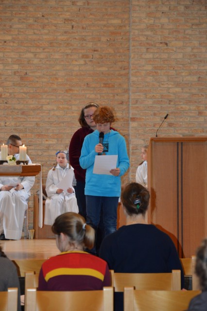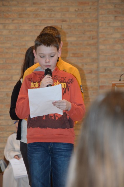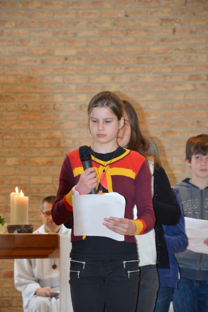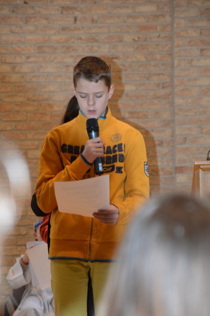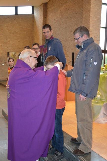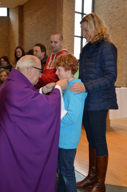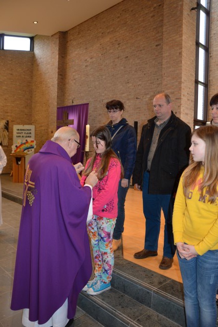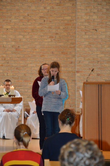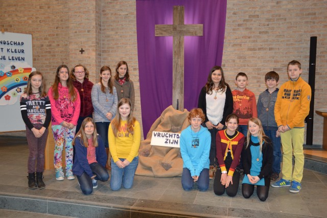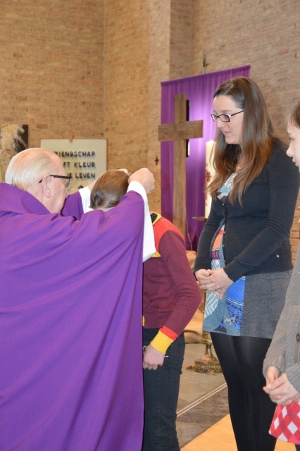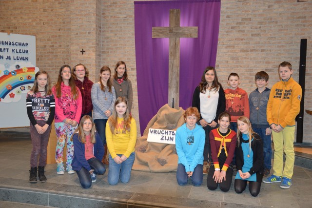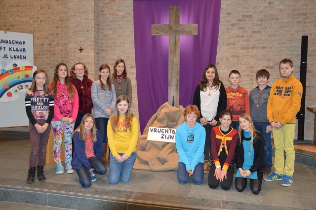 VORMELINGEN OP HET KRUISPUNT Tijdens de zondagsviering van de kruisjesgave ontvingen onze vormselkandidaten het kruisje. Dat moet hen eraan herinneren dat zij op een “kruispunt” komen in hun leven. Het plaatst deze jongeren voor de keuze of ze de route die Jezus voor hen gekozen heeft, ook echt willen volgen. De vraag klonk al in het intredeliedje: ‘Ga je mee, mee op weg. Sta even stil en luister wat Hij zegt. Leven is meer dan Jij en ik alleen. Leef in mijn Geest, dat zegt ons de Heer.' De viering verliep andermaal stijlvol en vlot. Ieder werd geboeid door het mooie ritueel, de teksten en liederen. Ook en vooral stond Broederlijk Delen in de kijker. Concreet gebeurde dit met de eerste algemene collecte. Over de soepactie op de grote Markt en in de kerk berichtten wij vorige week al. Later brengen we het globale resultaat van al onze solidariteitsacties. St.-Pieter startpagina |