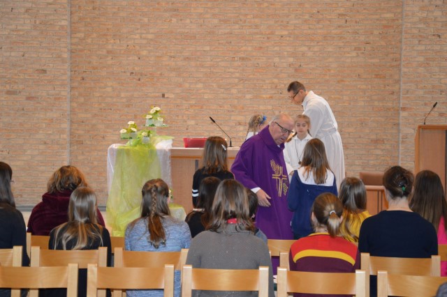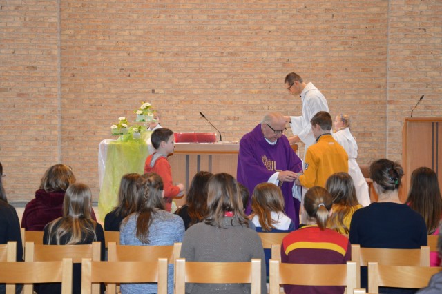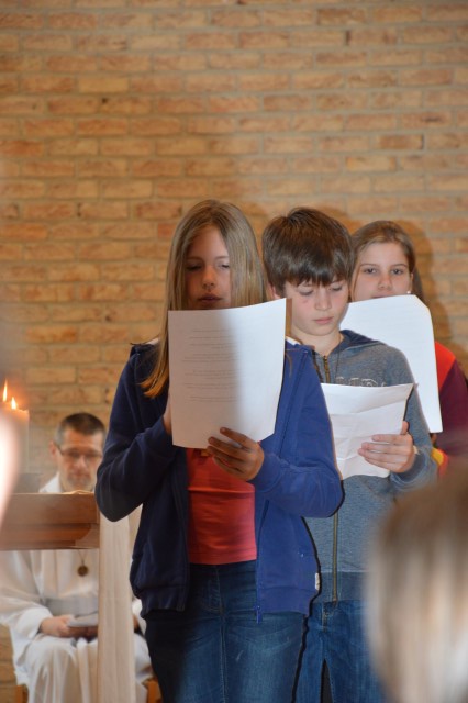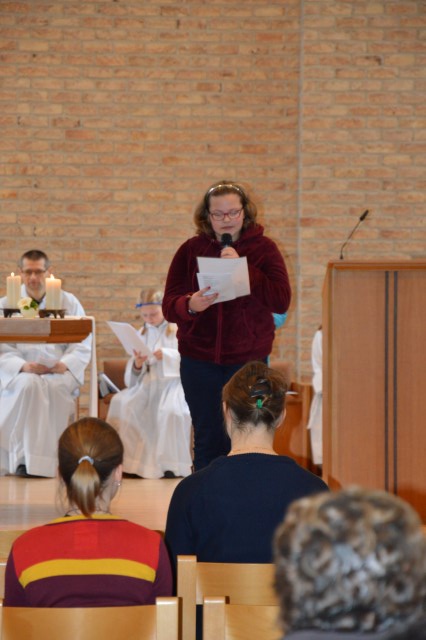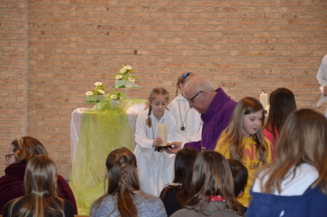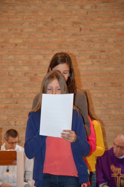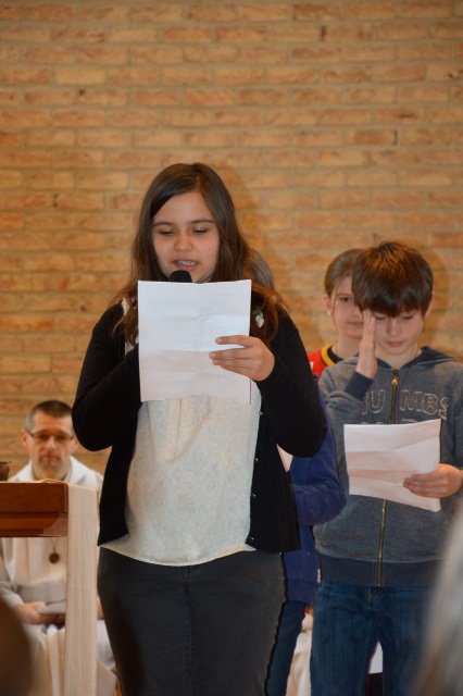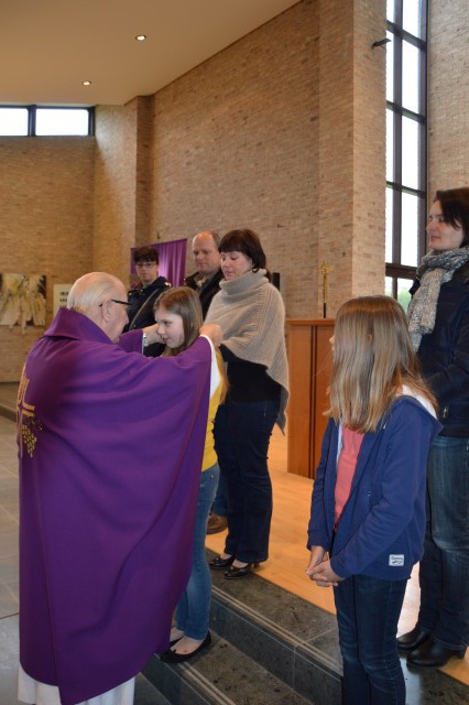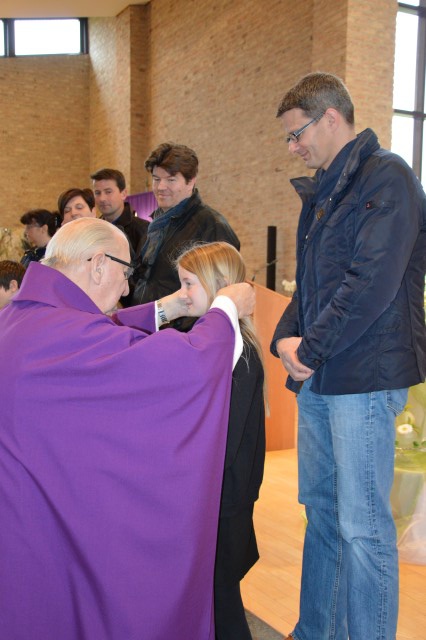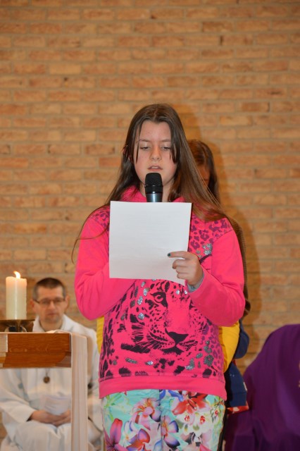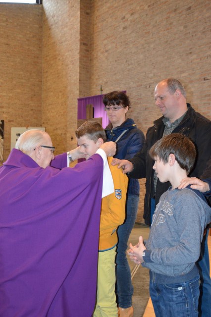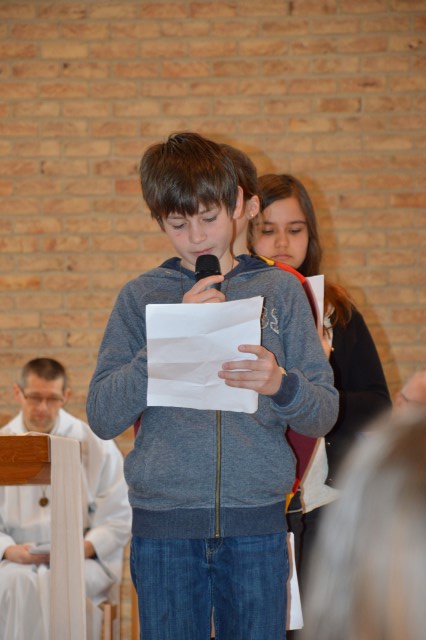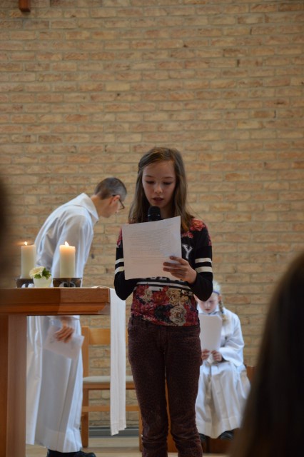VORMELINGEN OP HET KRUISPUNT Tijdens de zondagsviering van de kruisjesgave ontvingen onze vormselkandidaten het kruisje. Dat moet hen eraan herinneren dat zij op een “kruispunt” komen in hun leven. Het plaatst deze jongeren voor de keuze of ze de route die Jezus voor hen gekozen heeft, ook echt willen volgen. De vraag klonk al in het intredeliedje: ‘Ga je mee, mee op weg. Sta even stil en luister wat Hij zegt. Leven is meer dan Jij en ik alleen. Leef in mijn Geest, dat zegt ons de Heer.' De viering verliep andermaal stijlvol en vlot. Ieder werd geboeid door het mooie ritueel, de teksten en liederen. Ook en vooral stond Broederlijk Delen in de kijker. Concreet gebeurde dit met de eerste algemene collecte. Over de soepactie op de grote Markt en in de kerk berichtten wij vorige week al. Later brengen we het globale resultaat van al onze solidariteitsacties. St.-Pieter startpagina |
