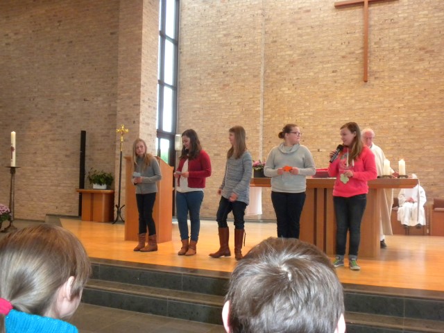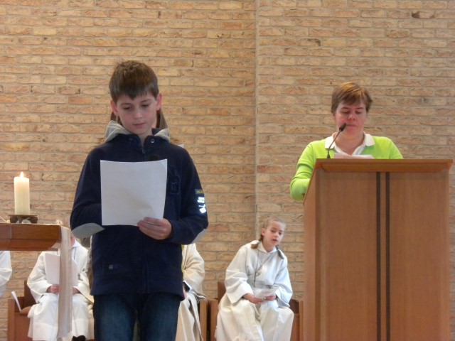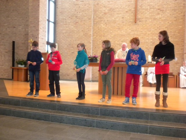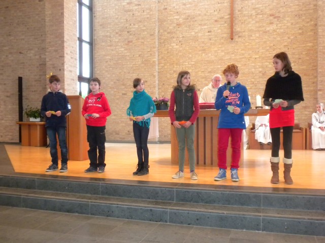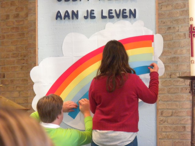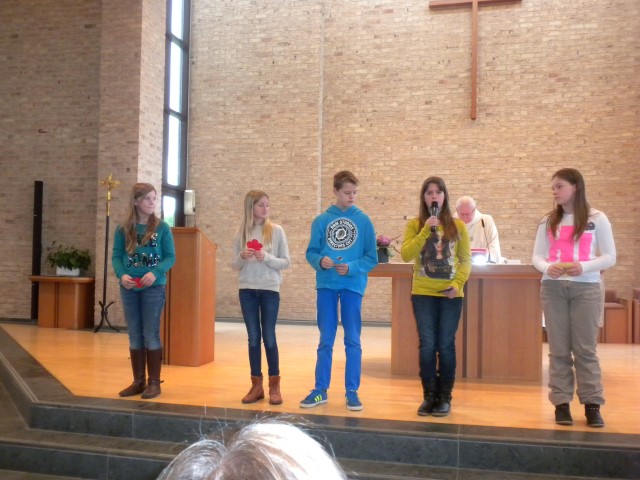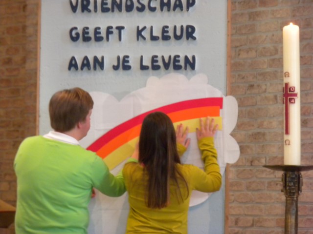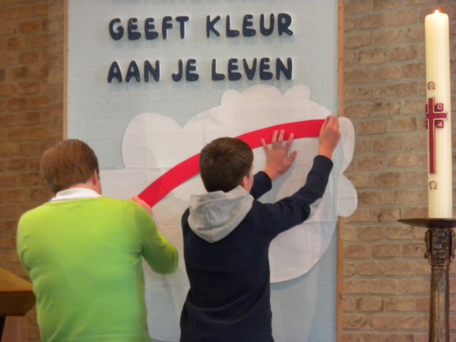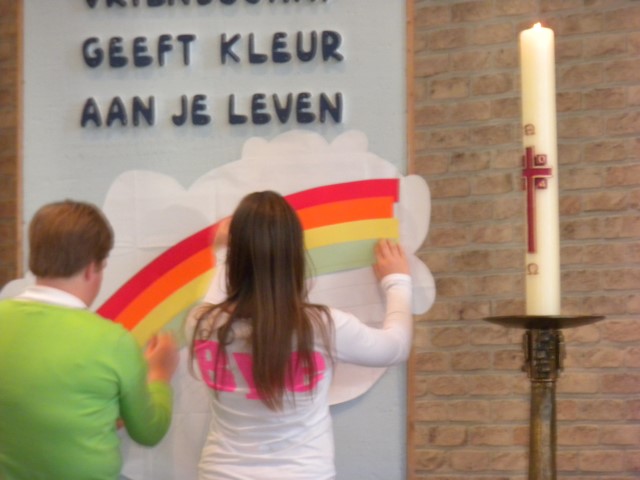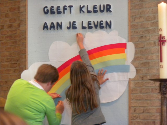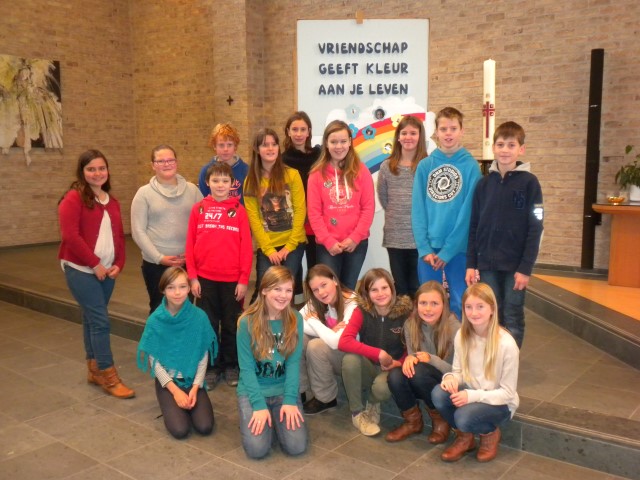 VORMELINGEN BEKENNEN KLEUR! Zondag 9 november lieten onze vormelingen-in-spe tijdens de viering van de naamopgave hun naam ook werkelijk blijgestemd horen aan alle aanwezigen in onze St.-Pieterskerk. Een eerste belangrijke stap op weg naar het Vormsel. Daarmee lieten ze zien dat ze bereid zijn Jezus te zoeken, en hun doopbeloften concrete gestalte te geven. De hele parochie-gemeenschap steunt hen en hun ouders bij deze belangrijke beslissing. Het jaarthema: “Vriendschap geeft kleur aan je leven!” zat mooi vervlochten in de zorgvuldig voorbereide teksten en de liedjes. Dat de groep er bovendien heel wat voor over had, bewees de repetitie de zaterdag ervóór. In naam velen: dank en proficiat! St.-Pieter startpagina |