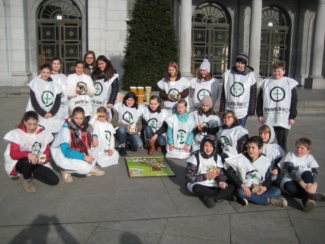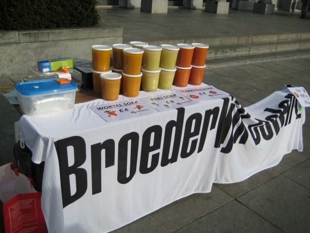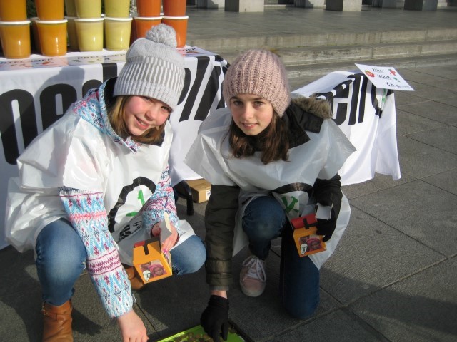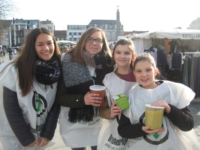 SOEP OF MUNT Onze vormelingen gingen zaterdag 11 maart op de markt soep verkopen. Ook legden zij er een munttapijt aan. Zo droegen zij hun steentje bij tot de parochiale actie van Broederlijk Delen (concreet: Burkina Faso). Dat liet vele marktgangers niet onberoerd. Er werd immers het mooie bedrag van 451 euro bijeengebracht. De kernleden van Ziekenzorg-St-Pieter hadden hun daarbij een belangrijke steun verleend; de vrijdag ervoor hadden zij zich in de keuken van De Spil verzameld om de soep in drieërlei soorten klaar te maken. En dat mag ook wel eens vermeld! St.-Pieter startpagina |