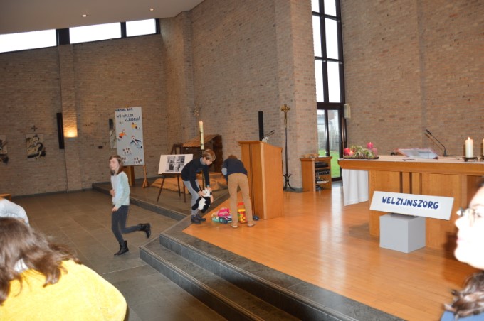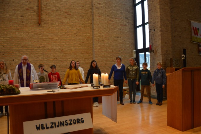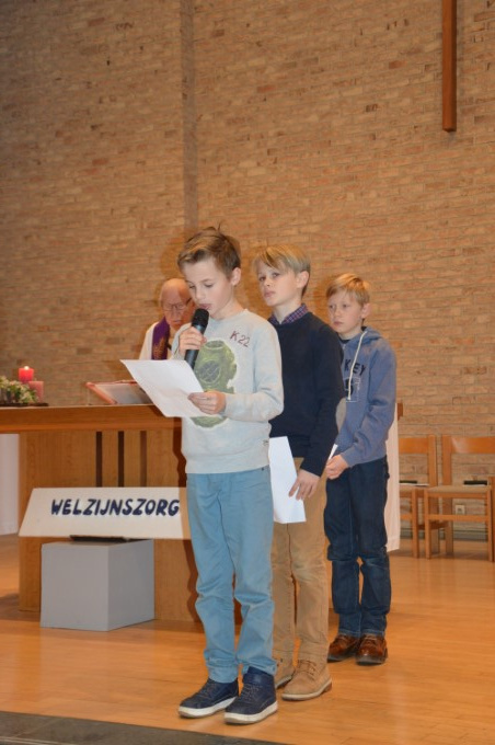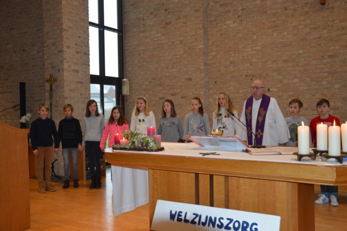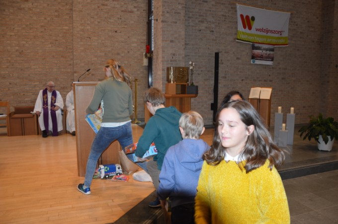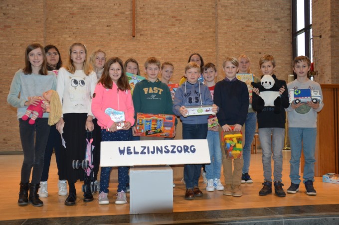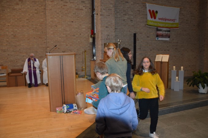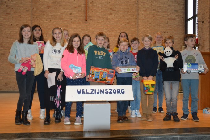 ST.-PIETER BEHARTIGT WELZIJNSZORG! Zoals elk jaar brachten de vormelingen tijdens de welzijnsviering op de derde adventszondag speelgoed aan, dat zij graag afstaan aan de verwaarloosde kinderen. Het wordt hen bezorgd door de VZW “De Helpende Handâ€. De adventsviering, mooi voorbereid door de vormselcatechisten, stond volledig in het teken van de campagne van Welzijnszorg “Samen tegen armoede†Het speelgoed, de collecte en de traditionele klereninzameling van de donderdag erna, vormen de concrete bijdrage van onze parochie, waarvoor van harte dank. St.-Pieter startpagina |