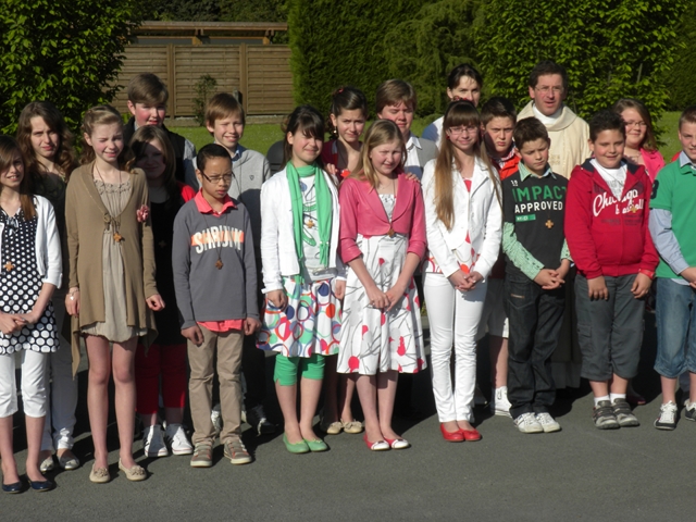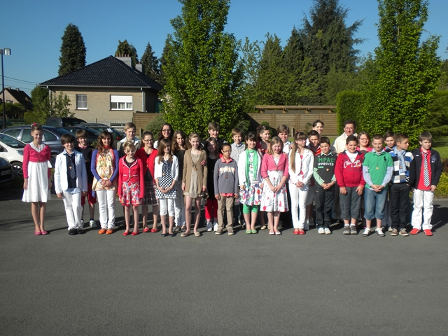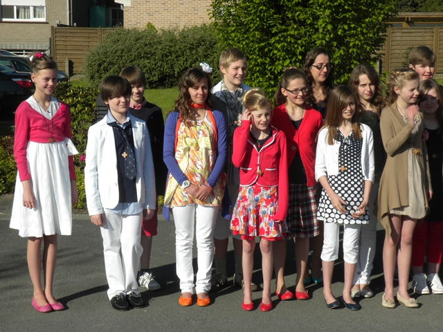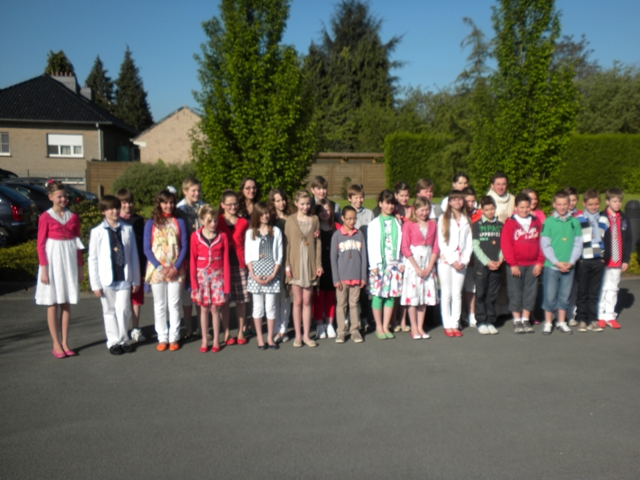 Heilig Vormsel 2012. ZE SCHITTERDEN, ONZE VORMELINGEN. Het is dan toch een vrij zonnig dagje geworden, die 13de mei ondanks het kille morgenuur. De vomselplechtigheid zou mooi worden, ze hadden er genoeg voor gerepeteerd. Vicaris Lode Aerts, die vriendelijke dynamische ‘vormheer’, liet niets aan het toeval over. Bij de groepsfoto vooraf nam hij met de jonge gastjes nog eens het vormselmoment door. Het is een viering geworden, heel direct, zonder omhaal, maar toch met een hart. De Ja's bij de hernieuwing van de doopgeloften klonken ferm door de kerkruimte. De groep, maar ook de meevierende gemeenschap, gedroeg zich heel gedisciplineerd en ongedwongen, mede door de grondige aanpak door ons jonge catechistenploegje en de logistiek van de parochiale medewerkers. Ook het koor was present om de liedjes van de jongeren te ondersteunen, gedragen door een stevige ritme van de keyboard in combinatie met het orgel. Dit alles rond een zinvol versierd altaar. Een prachtig moment was het themalied: “Laat mij een ster zijn.” Het applaus was dik verdiend. Want de boodschap was duidelijk: Wij leiden niet zomaar ons leven. God heeft met ons een heel mooi plan. Ik ben er echt van in de ban. Wil jij er ook met mij naar streven ? Daar wordt de wereld beter van. Laat mij een ster zijn in de nacht, een lichtje in ’ t donker, een teken van kracht, een straaltje van hoop, want ik geloof in Gods droom en ik ga…ervoor. Hiep past een dankwoordje aan allen die deze beklijvende viering mogelijk maakten. Zichtbaar en onzichtbaar! Op weg naar het H.VORMSEL Op onze parochie komt Vicaris Lode Aerts het Vormsel toedienen op zondag 13 mei om 9 u. aan : Arthur Bourgeois - Debby Cousaert - Amber De Smet - Bo Demeulenaere - Jarne Deriemaeker -Tom Desterke - Pauline Dethier - Gaëlle Hillewaere - Ian Huysman - Wannes Limbourg -Lennert Myncke - Amber Pollez - Luca Soetens - Marie Souris - Coline Thienpont - Thomas Van Asbroeck - Océane Van der Bruggen - Michaël Van Rijckeghem - Tessa Vande Lanotte - Brent Vandenabeele - Valentin Vandenhole - Fleur Vandercruyssen - Arne Vanpevenaege - Chelsea Vermeersch - Bjarne Verpoort - Bo Vlieghe Proficiat aan alle kinderen die het HEILIG VORMSEL mochten ontvangen. |